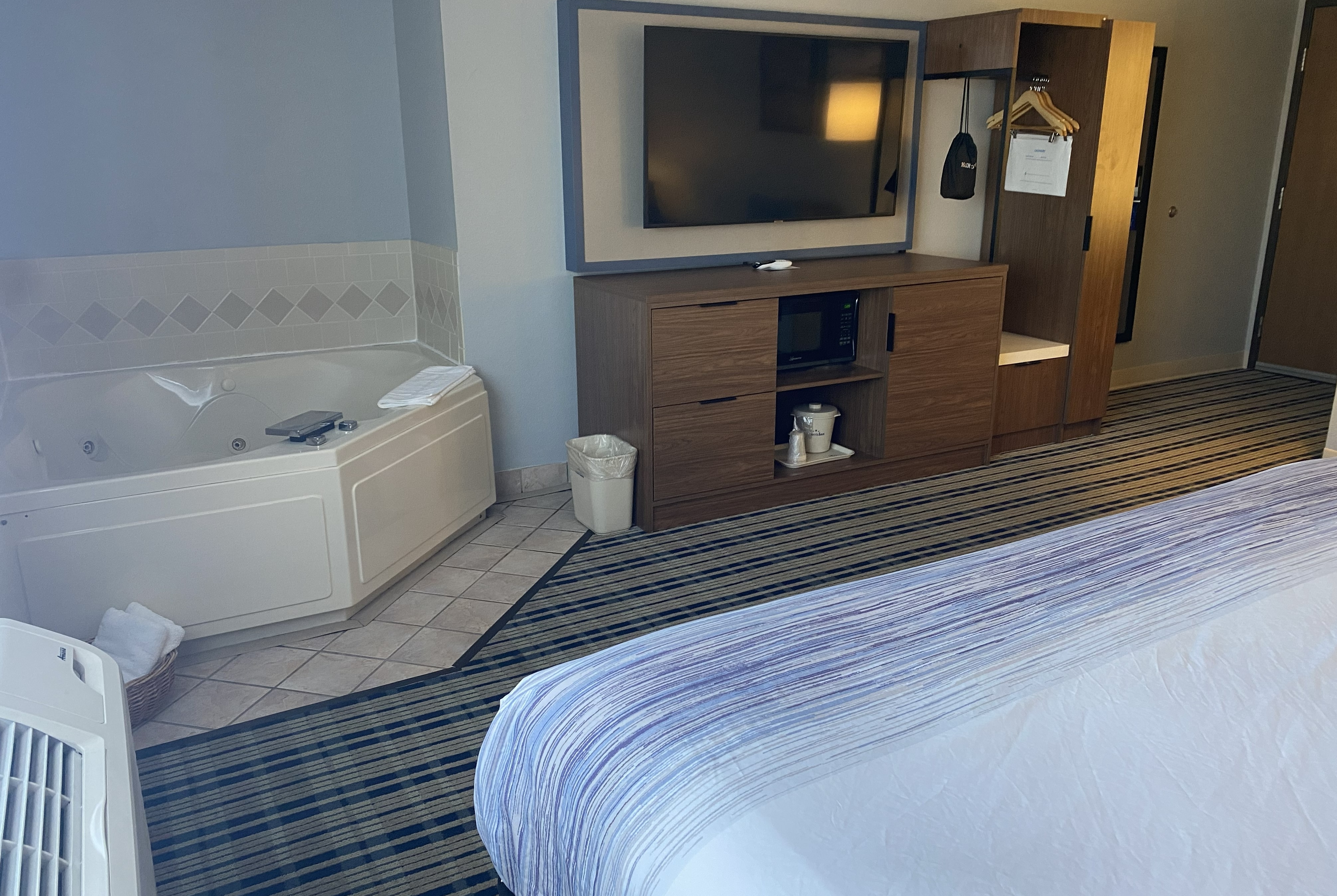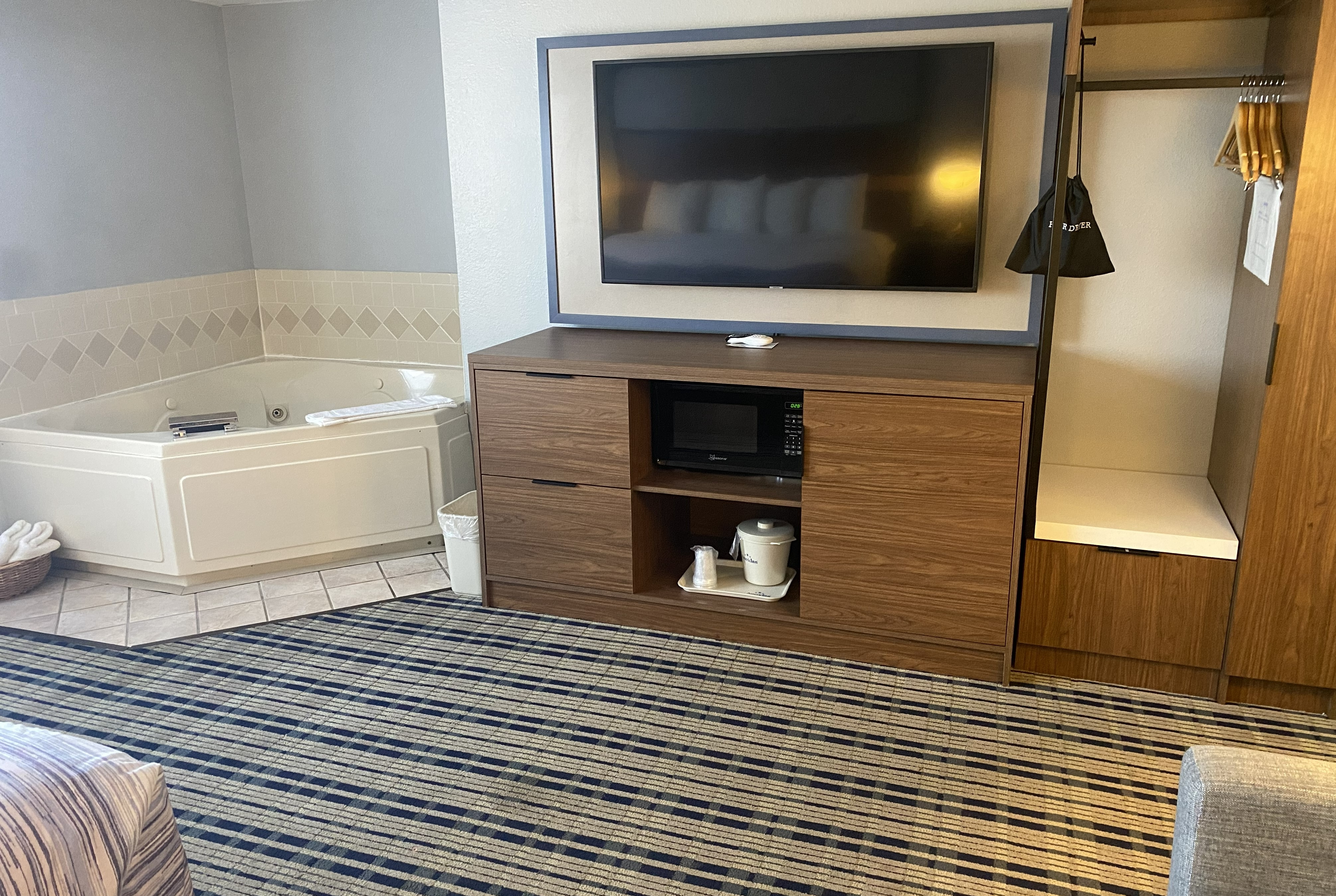 Start your day right with a free homestyle breakfast, featuring favorites like biscuits and gravy, Belgian waffles, and more. Our spacious indoor pool, hot tub, and sauna are relaxing any time of the year while a cozy fireside lounge is perfect for cold weather. You’ll find free WiFi throughout the hotel and our comfortable, non-smoking guest rooms feature a flat-screen HDTV, coffee/tea maker, and ironing amenities. We also offer jetted tub and fireplace suites, and pets are welcome for an extra fee.