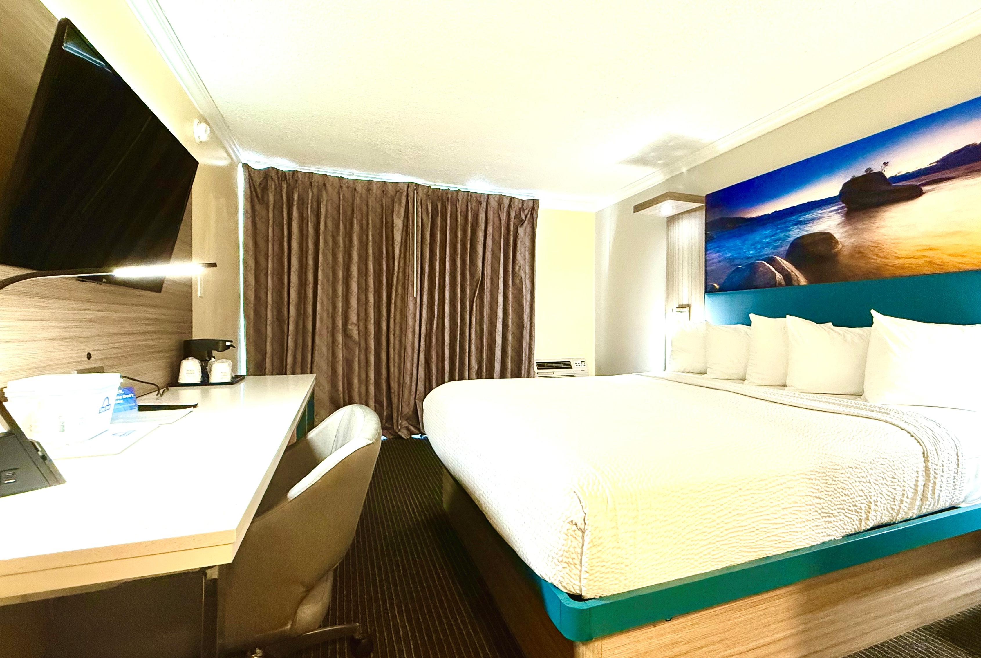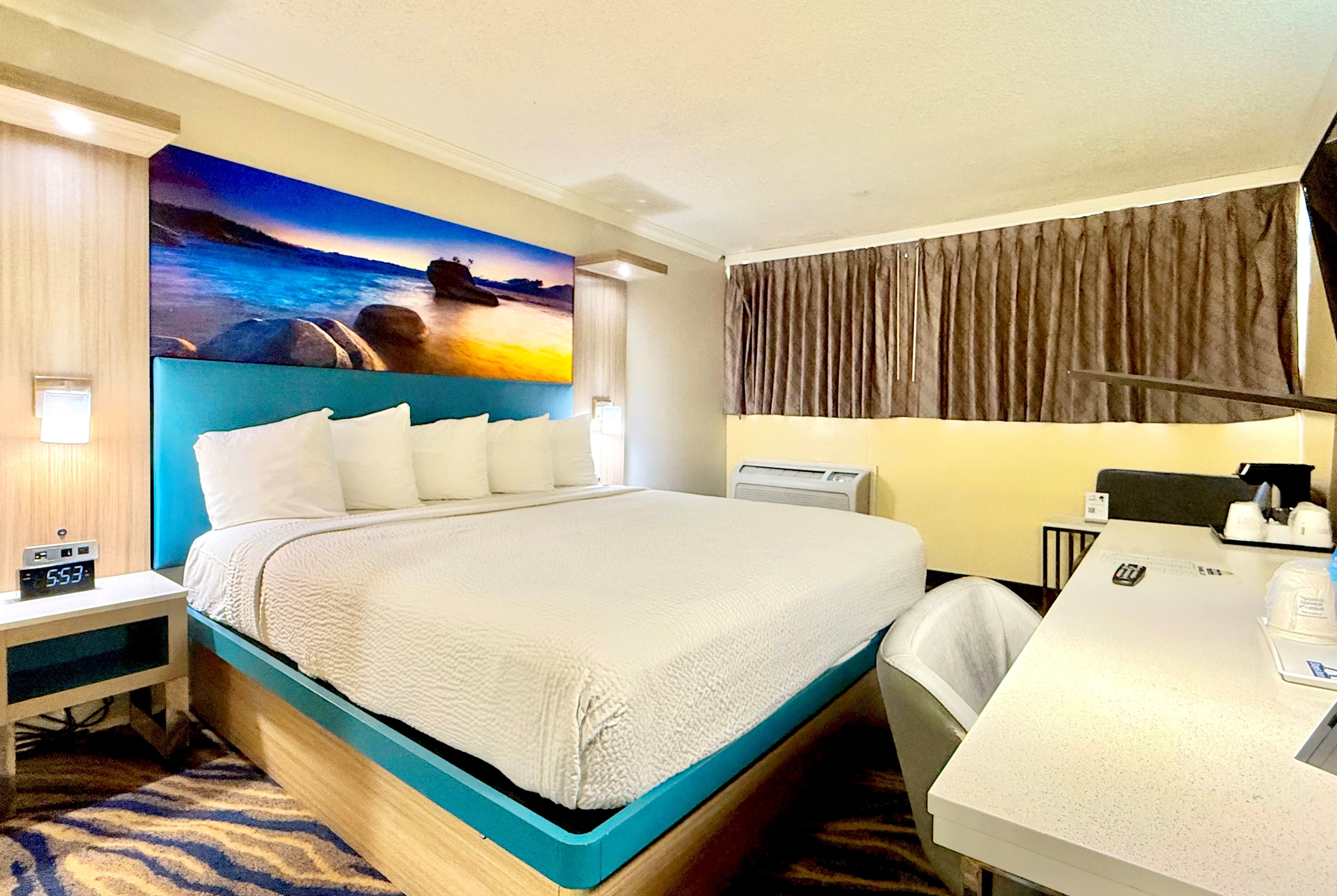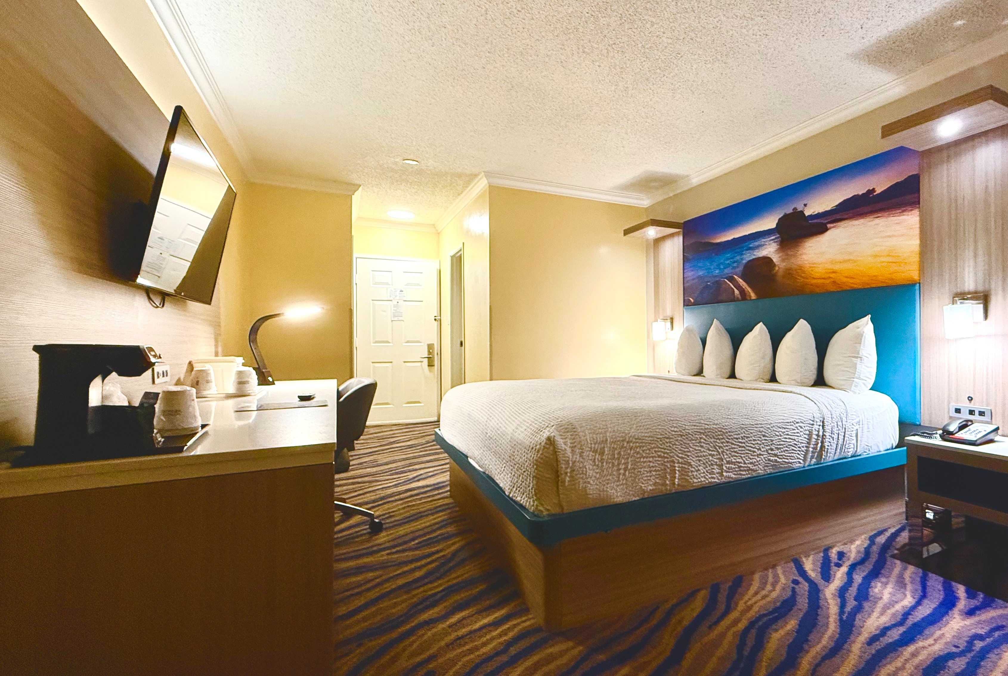 We offer a microwave and refrigerator in every spacious, air-conditioned guest room, and an onsite restaurant. Rise and shine for free light breakfast item together with your choice of coffee, tea and juice and cool off in our outdoor pool. Access free WiFi from your room, and take advantage of our guest laundry facilities. Non-smoking rooms are available, and we offer parking for a daily fee of $5 USD.