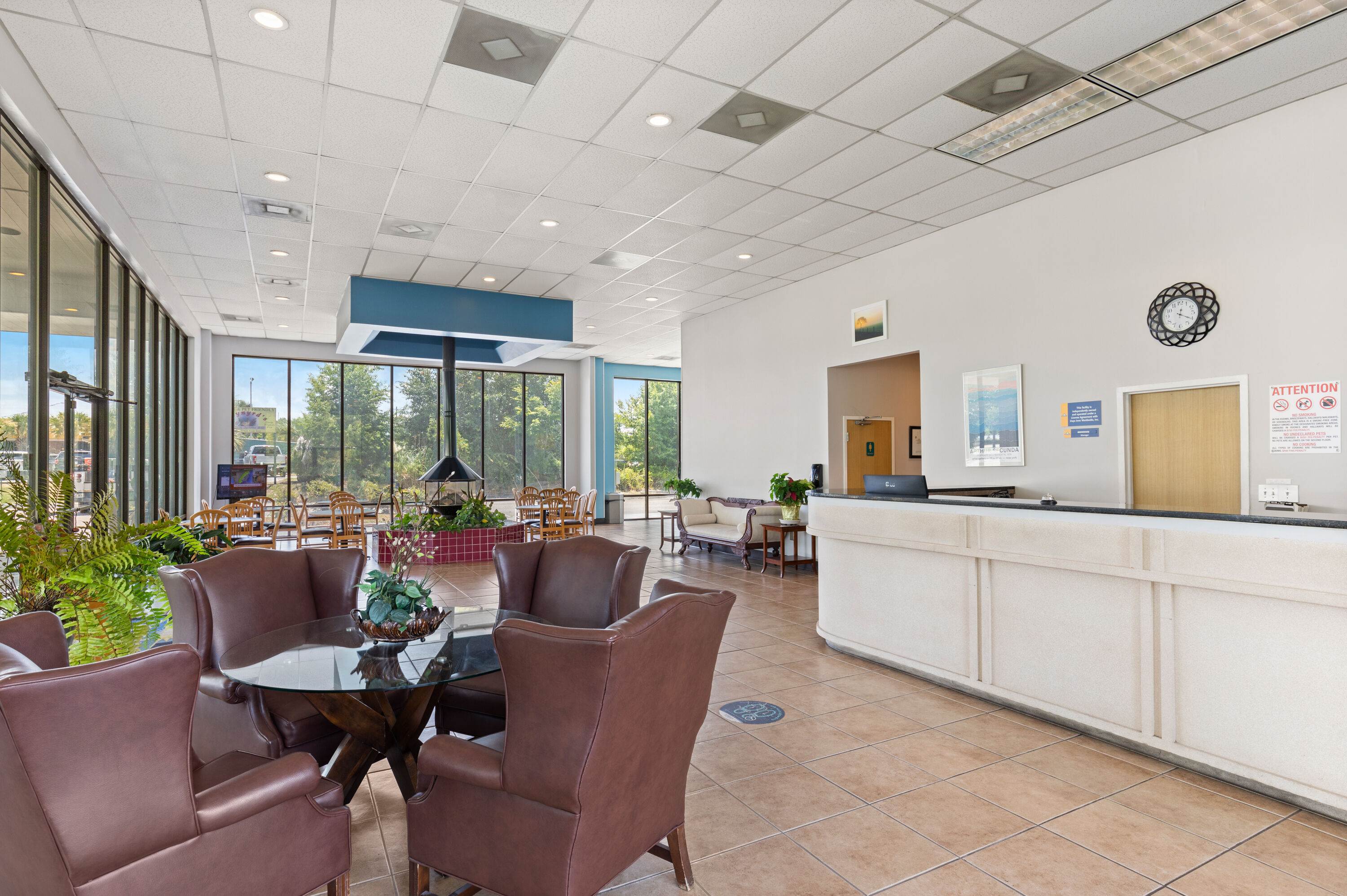 Start your day off with a free continental breakfast of oatmeal, bagels, fruit, and more before taking a relaxing dip in our outdoor pool. Get work done in the business center, complete with computers and copy machines. When you’re done exploring the area, rest in one of our guest rooms that feature a flat screen HDTV, air-conditioning, microwave, mini refrigerator, and ironing amenities. Pet-friendly rooms are available for a small fee, and accessible rooms and large-vehicle parking are on us.