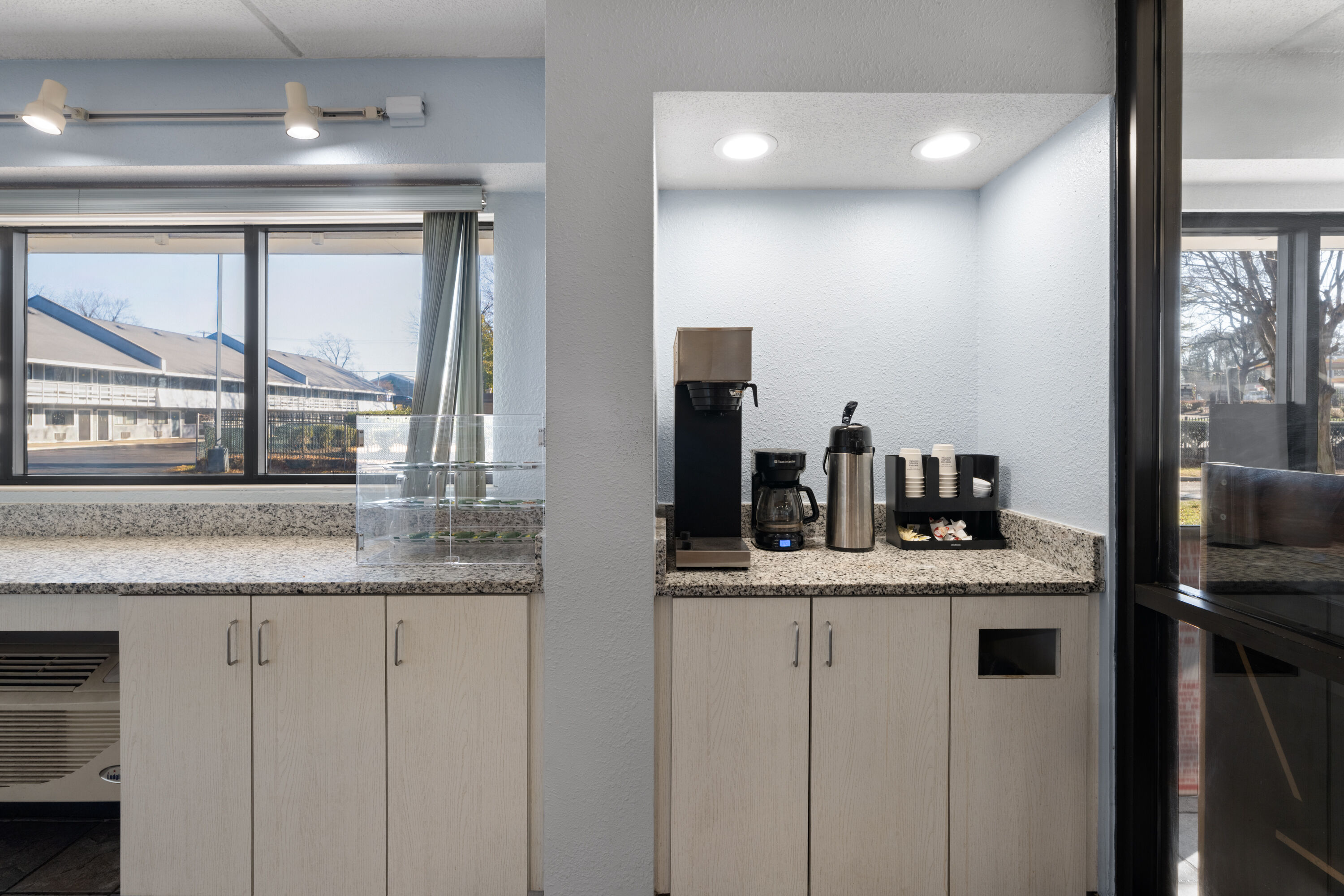 Wake up with a free light breakfast item together with your choice of coffee, tea, and juice served from 6–9 a.m. daily before catching up on emails using free WiFi. Pack light thanks to guest laundry facilities, ask our 24/7 front desk staff about complimentary passes to a local gym, and take advantage of free parking for your car, bus, or truck. Each spacious guest room features a mini-refrigerator, microwave, flat-screen HDTV, desk, hair dryer, bath products, and exterior corridor access. We also offer copy service and vending machines. Bring up to two pets (40 pounds or less) for an extra nightly fee.