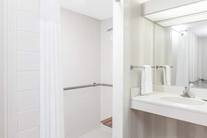 Guest room bath at the Wyndham Indianapolis Airport in Indianapolis, Indiana
