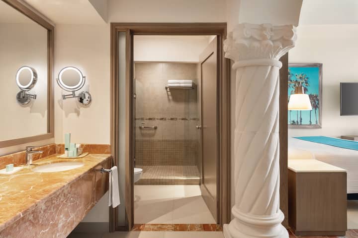 Guest room bath at the Wyndham Alltra Playa del Carmen Adults Only All Inclusive in Playa del Carmen, Other than US/Canada