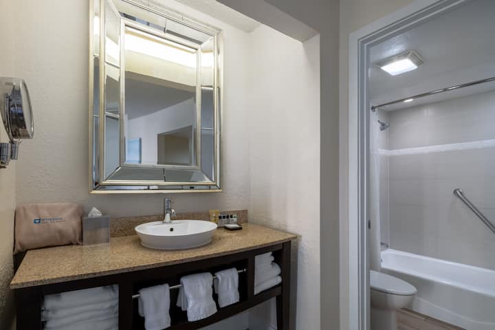 Guest room bath at the Wyndham Boca Raton in Boca Raton, Florida