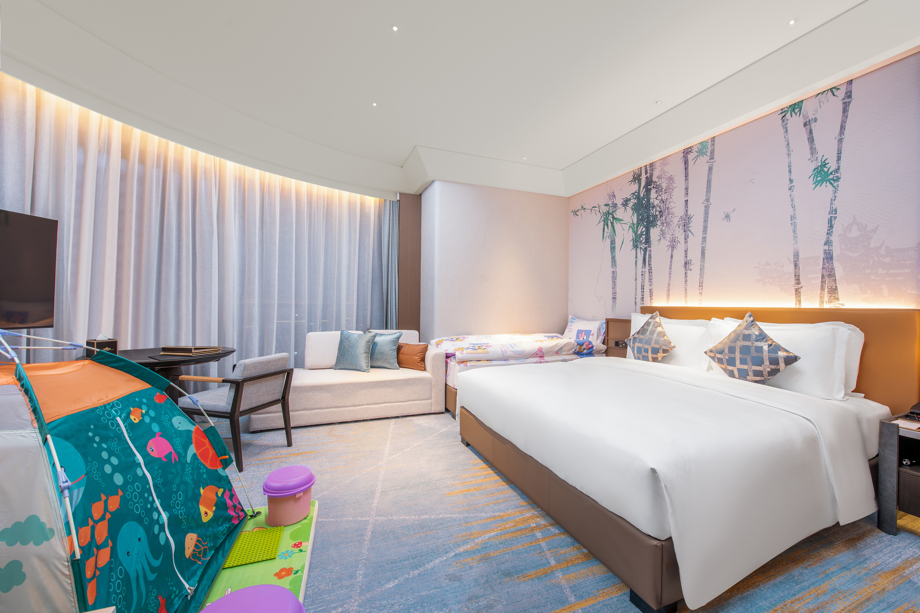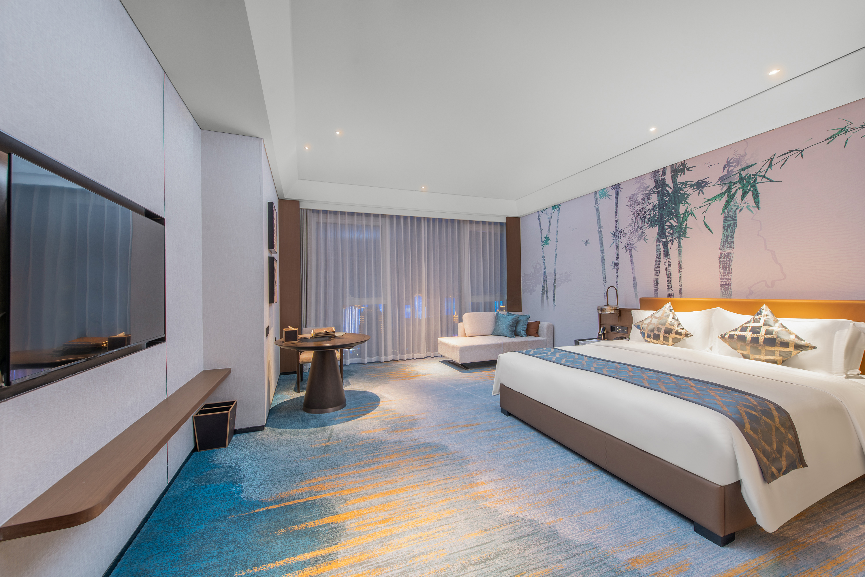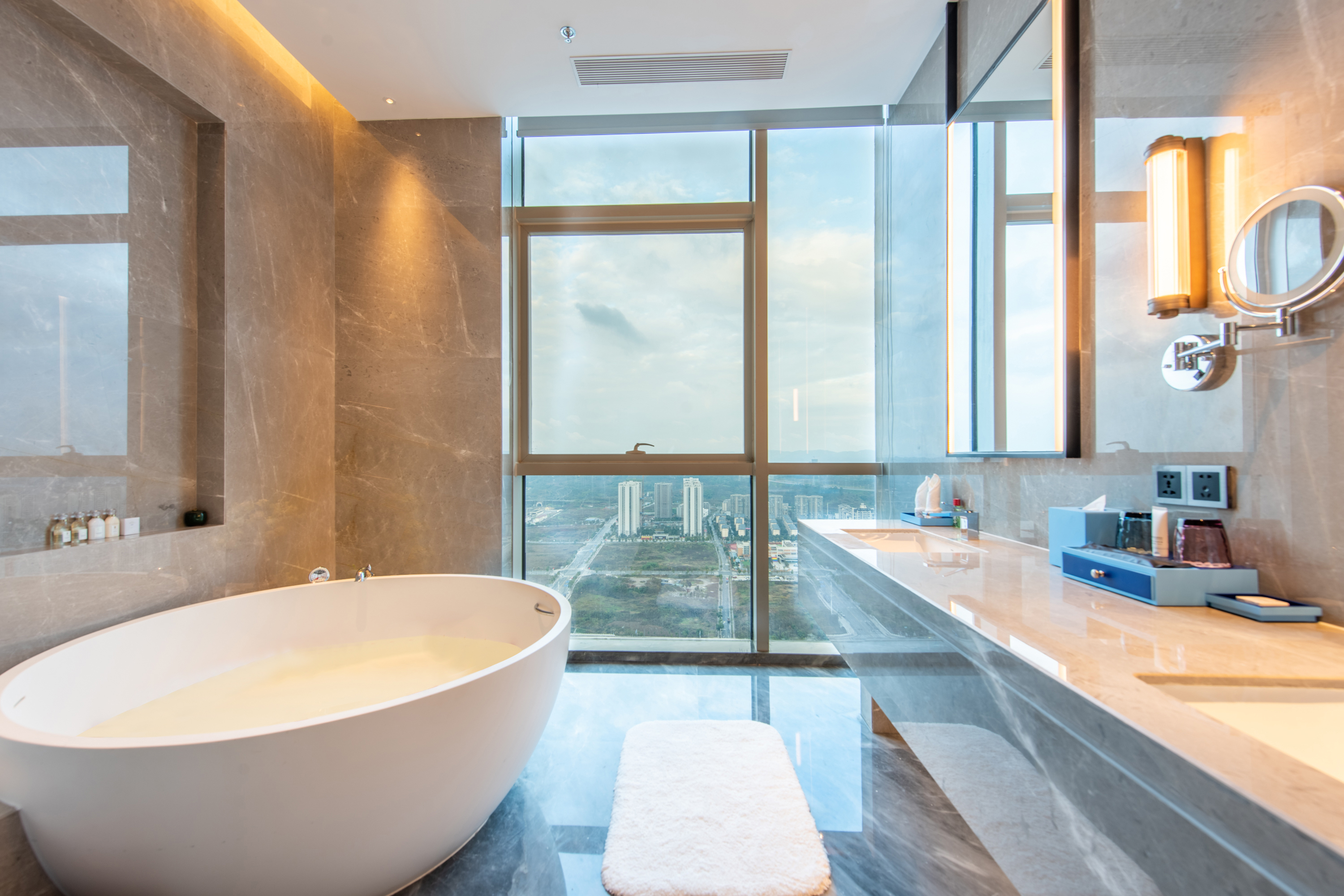 Indulge in Chinese and Western cuisine with two on-site restaurants and room service. Stay connected with free high-speed WiFi, work out in the fitness center, and take advantage of free parking. We also offer ample meeting and event space, dry cleaning and laundry service, a 24/7 front desk staff, and concierge. Boasting city and mountain views, each high-floor, non-smoking guest room features a flat-screen HDTV, sitting area, coffee/tea maker, minibar, desk, safe, ironing amenities, slippers, robes, bath products, hair dryer, and bottled water.