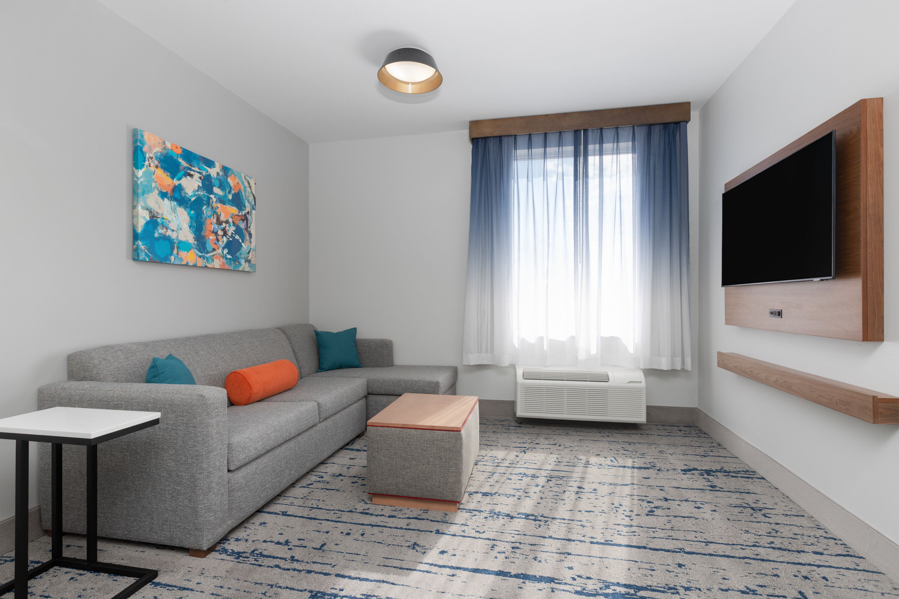 Relájate y energízate en nuestro hotel que admite mascotas y ofrece nuestro clásico servicio Aquí para ti. Cada habitación libre de humo está equipada con un sofá cama, una mininevera, un microondas, una cafetera/tetera, un televisor HD de pantalla plana, un escritorio, artículos para planchar, un secador de cabello y productos de baño. Cada mañana, energízate con un poco de ejercicio en el gimnasio disponible 24/7 y nuestro desayuno Bright Side Breakfast® gratuito. Sigue en contacto con la oficina o tus amigos gracias al WiFi gratis y nuestro business center, o nada en la piscina al aire libre. También ofrecemos estacionamiento gratuito, cargadores para vehículos eléctricos, instalaciones de lavandería y un mercado Bright Side Market.