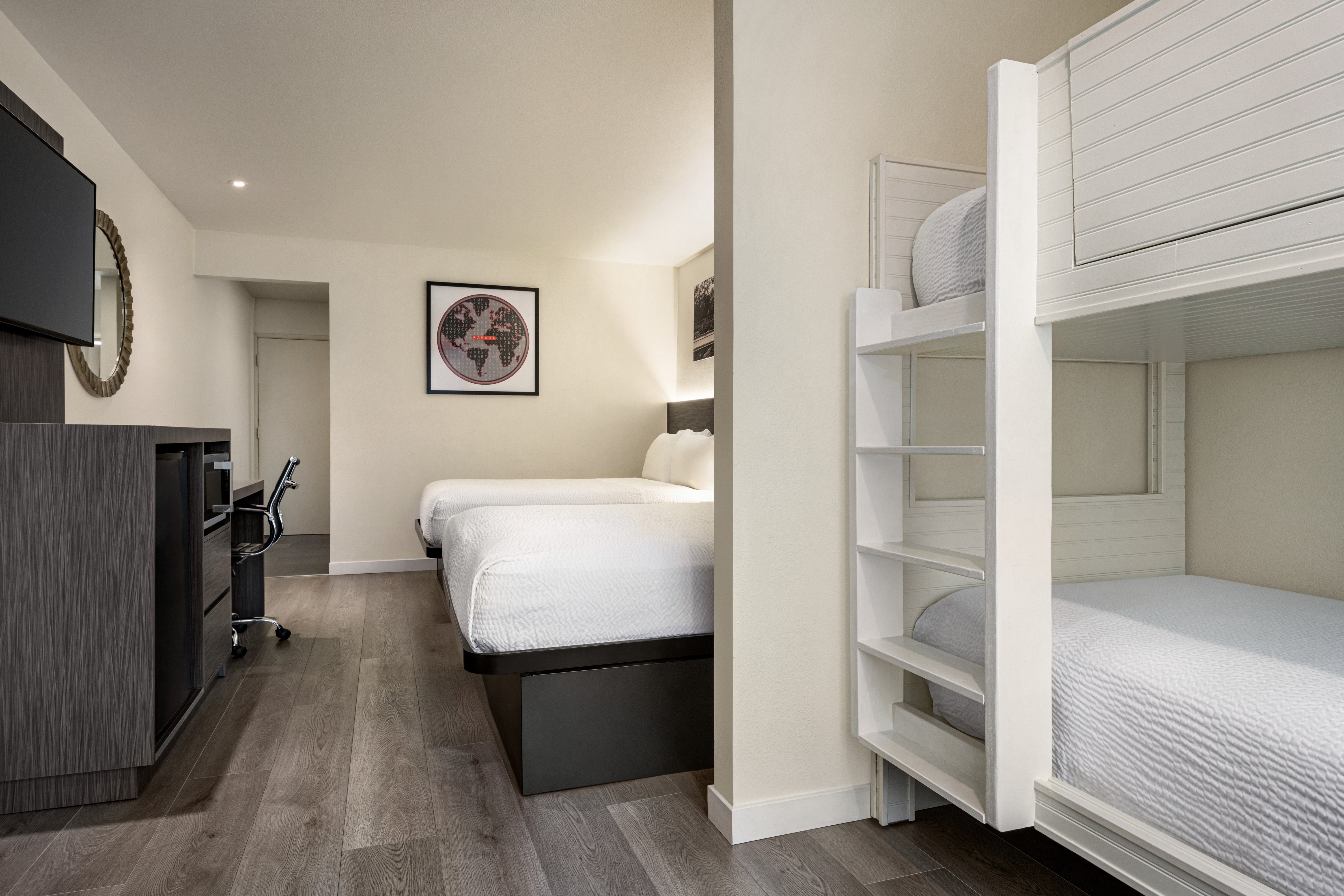 Guest room at the Ramada by Wyndham Anaheim Convention Center in Anaheim, California