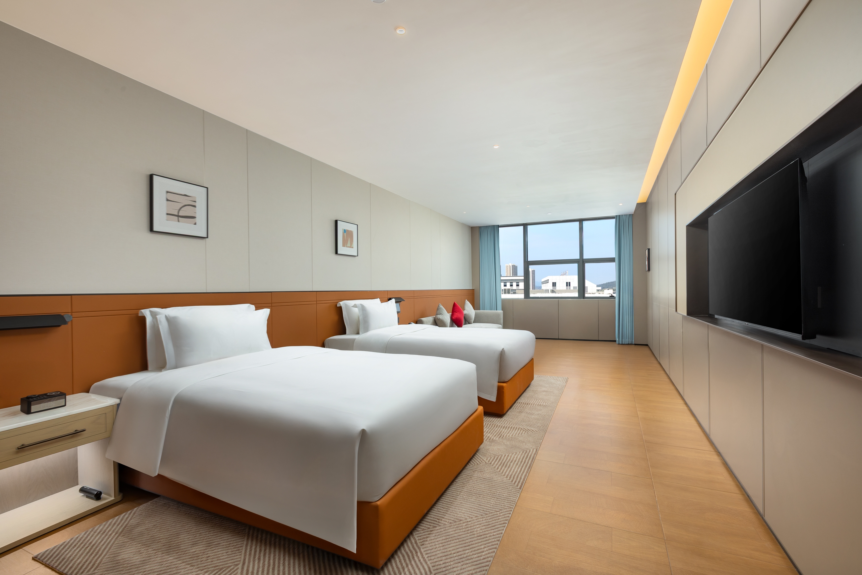 Hospédate con comodidades modernas como WiFi y estacionamiento gratis, un restaurante de desayunos, gimnasio, instalaciones de lavandería y habitaciones con vistas a la ciudad en Ramada by Wyndham Zhaoqing Dawang. Ubicado a pocos minutos de la estación de trenes del este de Zhaoqing y a 80 kilómetros del Aeropuerto Internacional de Guangzhou Baiyun (CAN), nuestro hotel en la innovadora zona de alta tecnología Zhaoqing ofrece fácil acceso al centro de la ciudad y a atracciones como el Parque Cultural de Bosques Dahanshan, la atracción turística de la montaña Hulu y el Parque Deportivo Jiangjunshan. También estarás a un corto recorrido en automóvil del Parque Dawang, la montaña Dinghu, la Torre Piyun y el lago Yanyang.