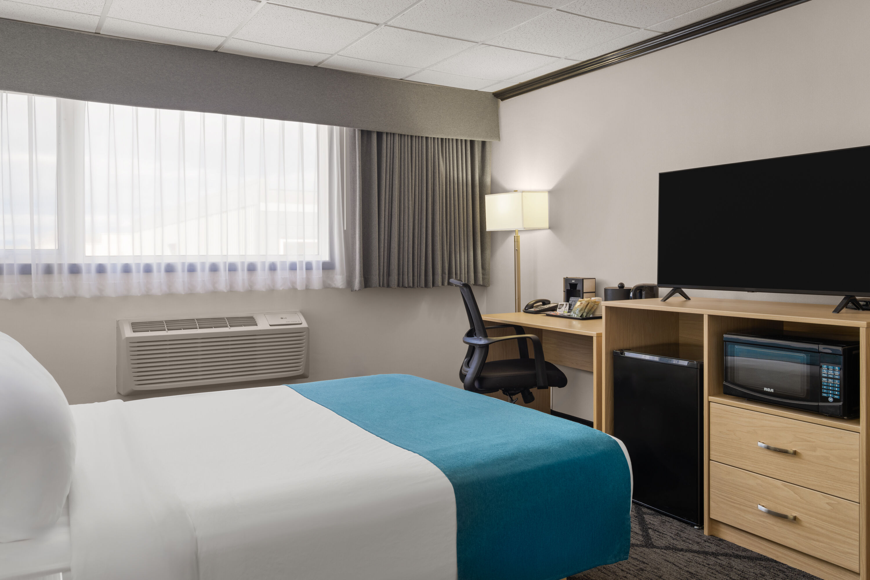 Work out in the fitness room, grab breakfast or dinner at the restaurant, and check emails using free WiFi. Laundry facilities allow you to pack light while limited free parking and a complimentary airport shuttle make it easy to get around. Each non-smoking guest room features a mini-refrigerator, microwave, coffee/tea maker, flat-screen HDTV, safe, desk, ironing amenities, hair dryer, and bath products. There’s also event space, ice machine, vending machine, and 24/7 front desk staff. Bring your dog or cat for an extra nightly fee.
