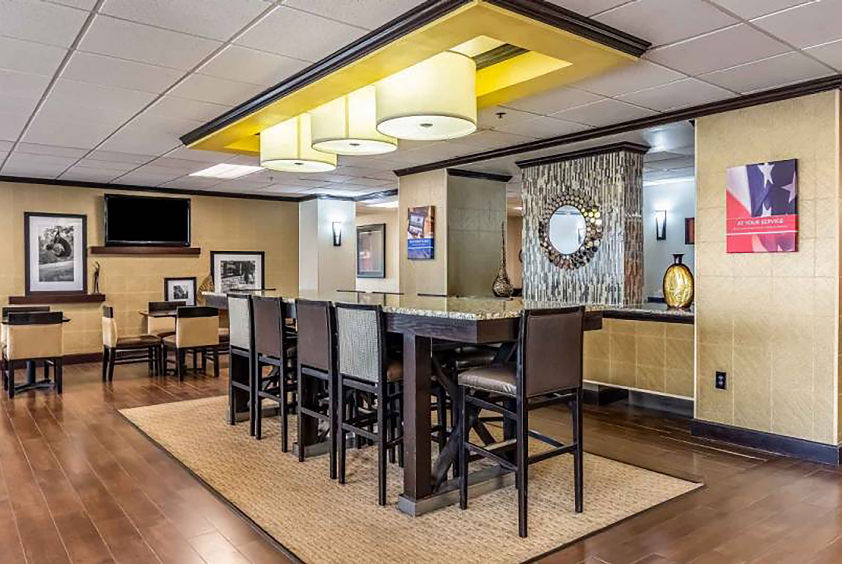 Start your day catching up on emails using free high-speed WiFi. Stay active in our 24/7 fitness center, unwind with a dip in the seasonal outdoor pool, and pack light thanks to guest laundry facilities. Each non-smoking guest room features a mini-refrigerator, microwave, flat-screen HDTV, desk, ironing amenities, hair dryer, and bath products. We also offer free parking, copy service, and a 24/7 front desk staff. Plus, pets are welcome for an extra nightly fee.