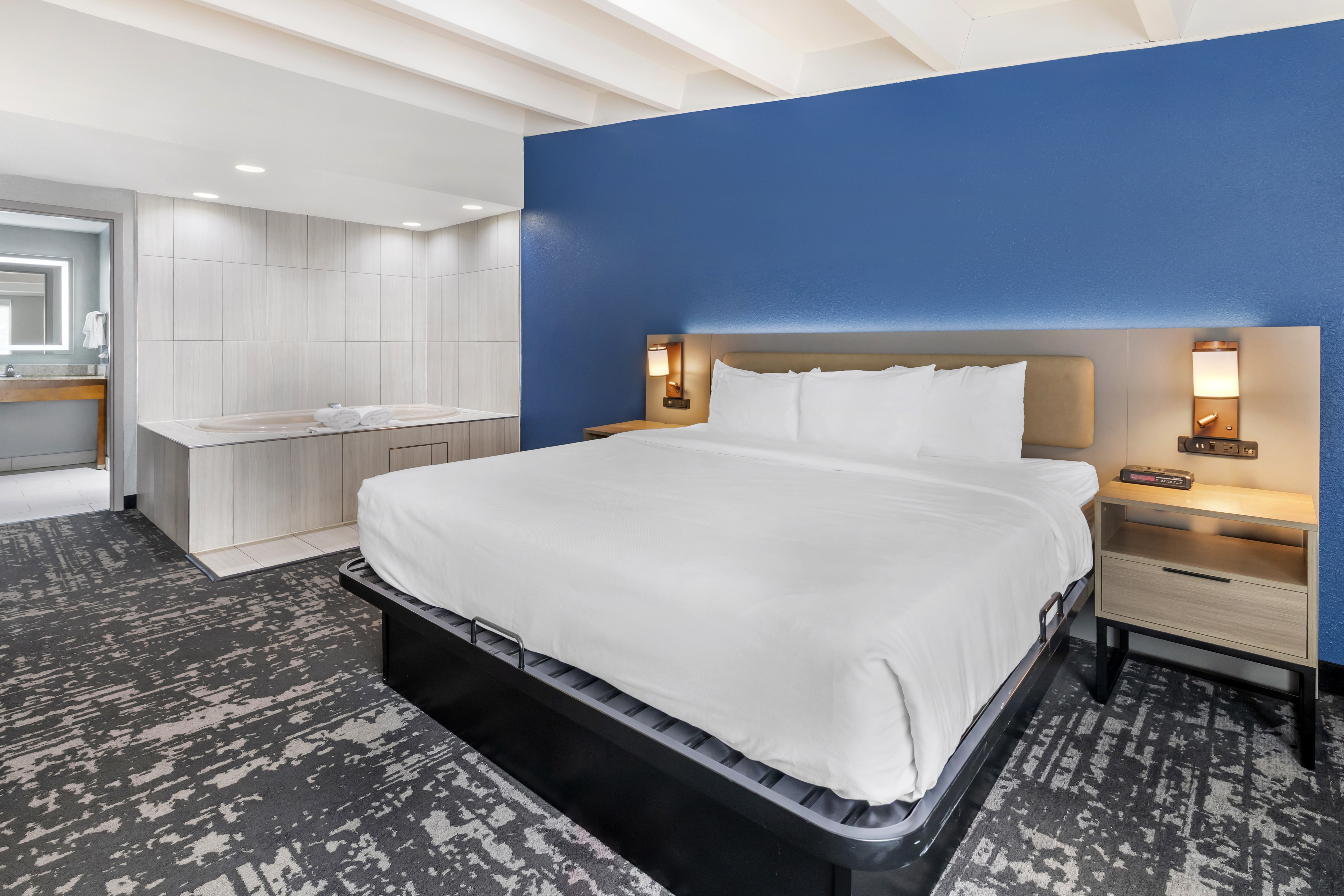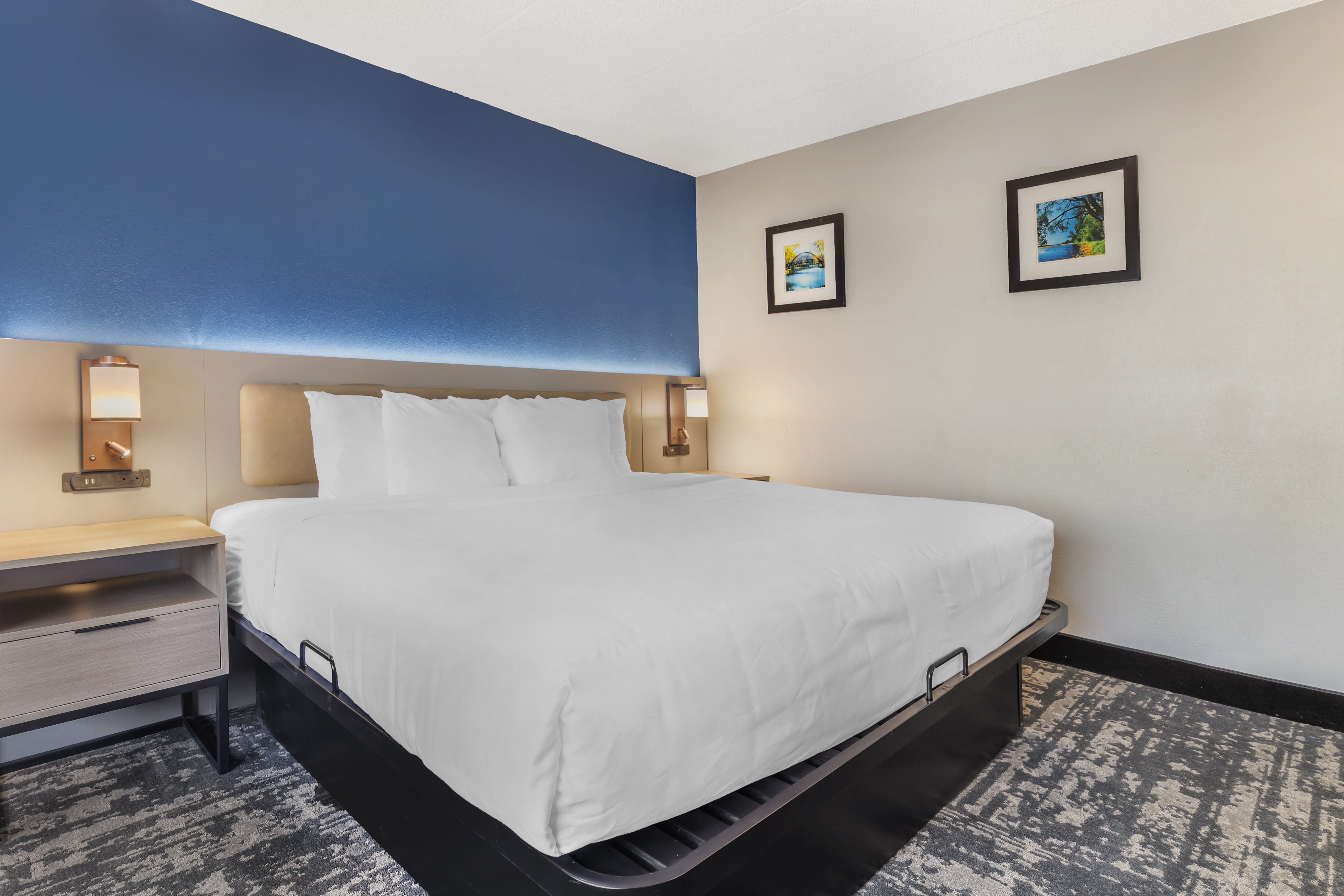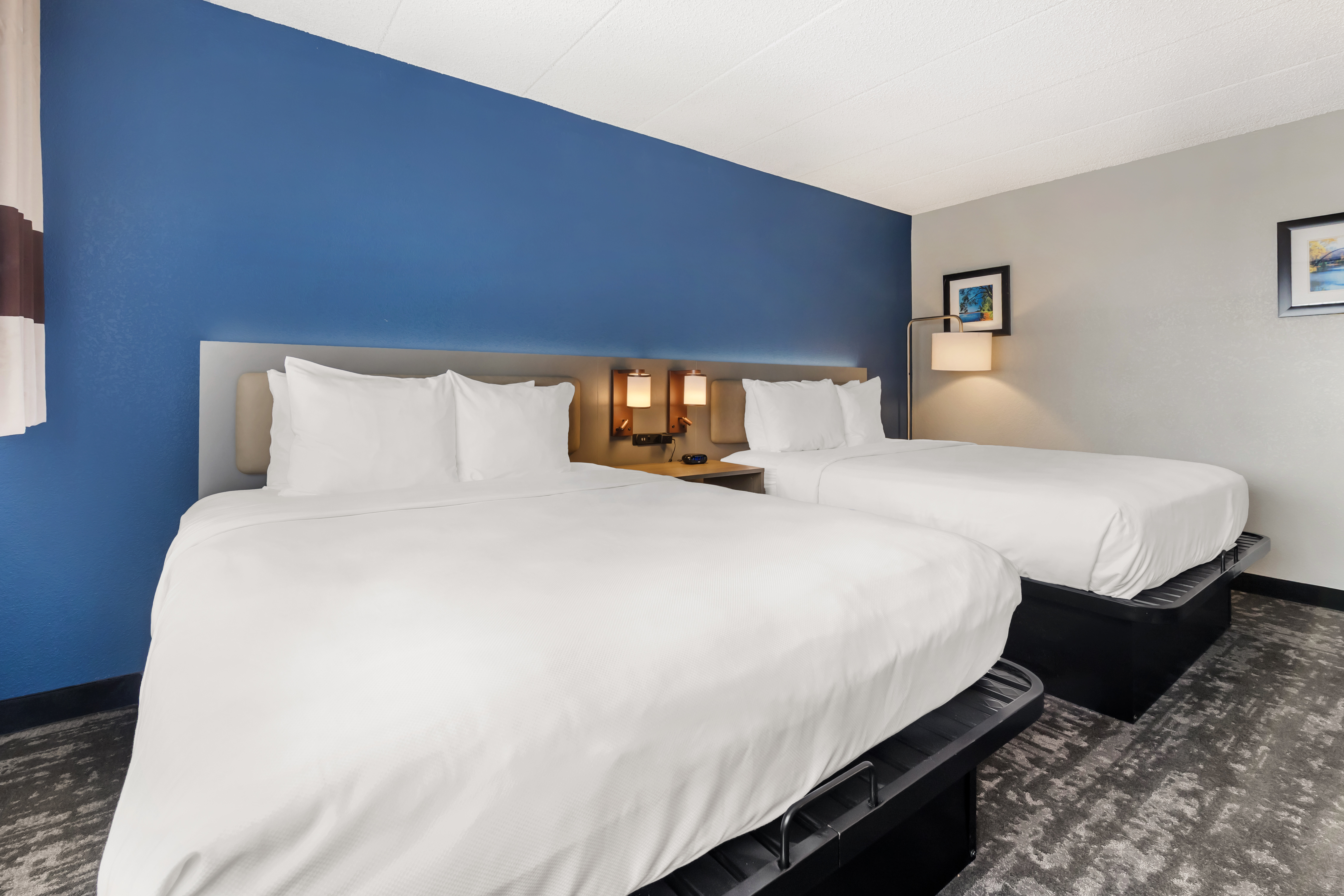 Wake up with a workout at the 24/7 fitness center followed by a free breakfast of waffles, eggs, sausage, and more. Relax in the indoor pool and hot tub, catch up on work with free WiFi and a business center, and take advantage of free parking and a paid airport shuttle (running daily from 4 a.m.–11 p.m.). Each non-smoking guest room features a flat-screen HDTV, mini-refrigerator, microwave, safe, desk, ironing amenities, bath products, and hair dryer. We also offer event space, laundry facilities, and a 24/7 front desk staff. Bring up to two pets (50 pounds or less) for an extra nightly fee.