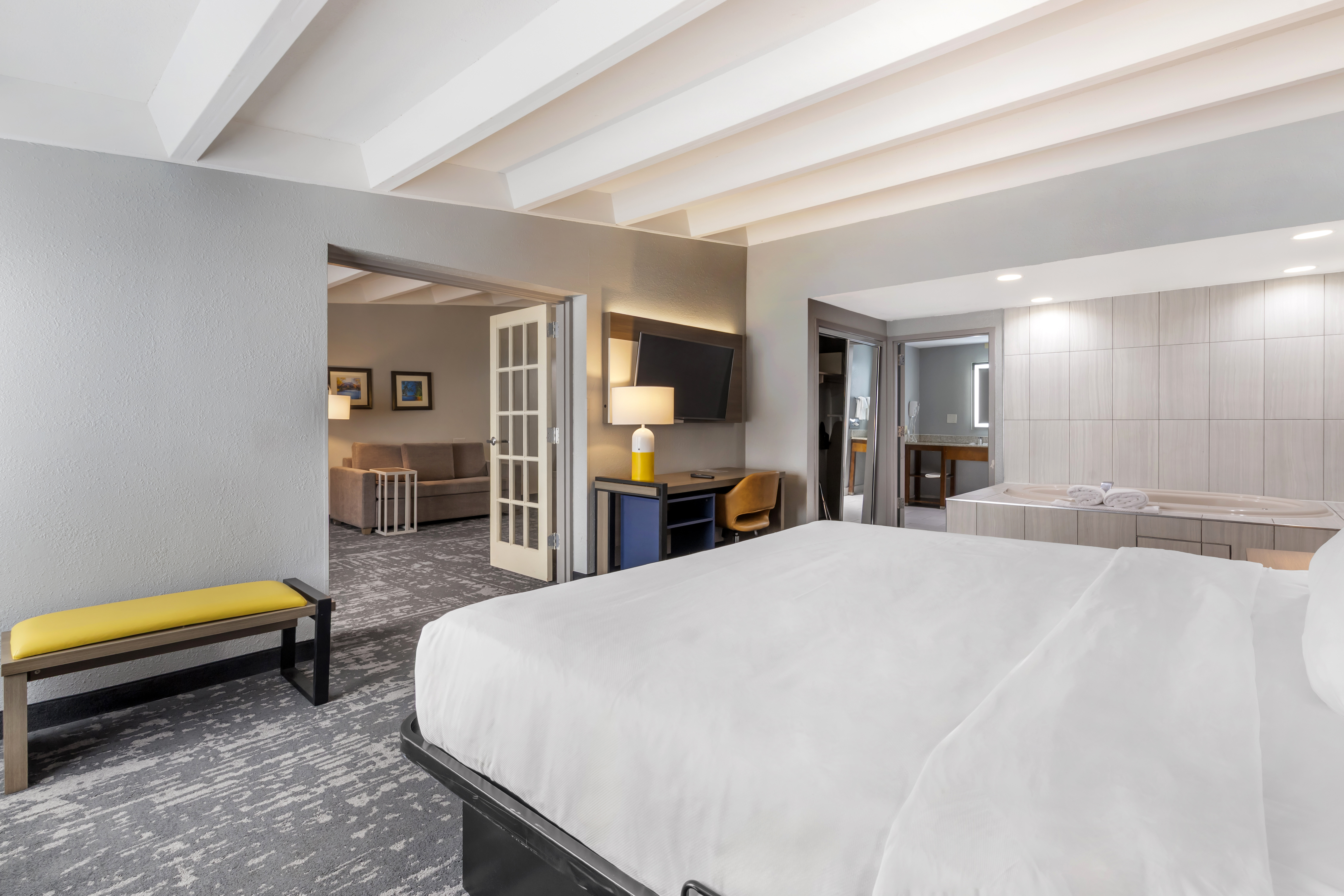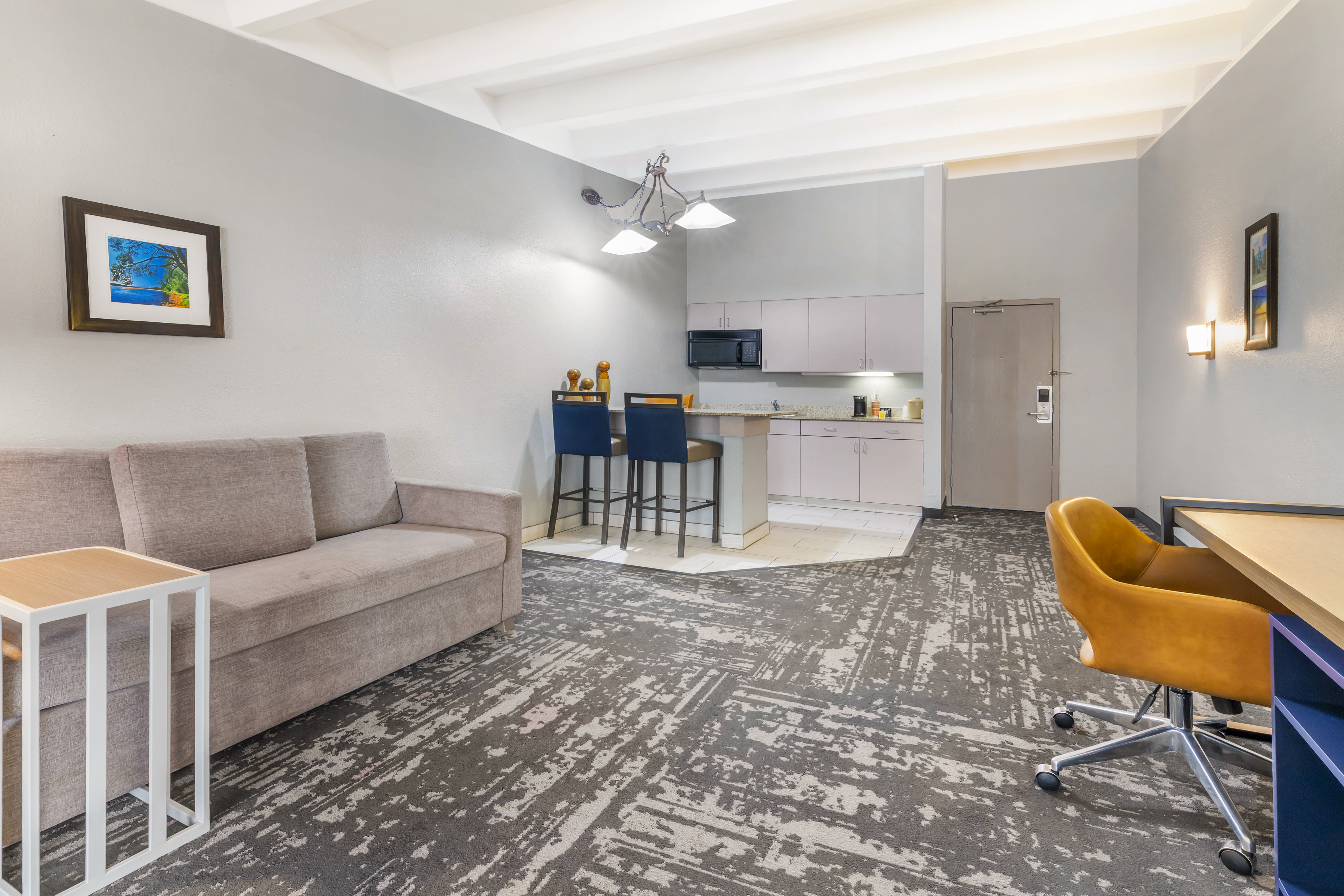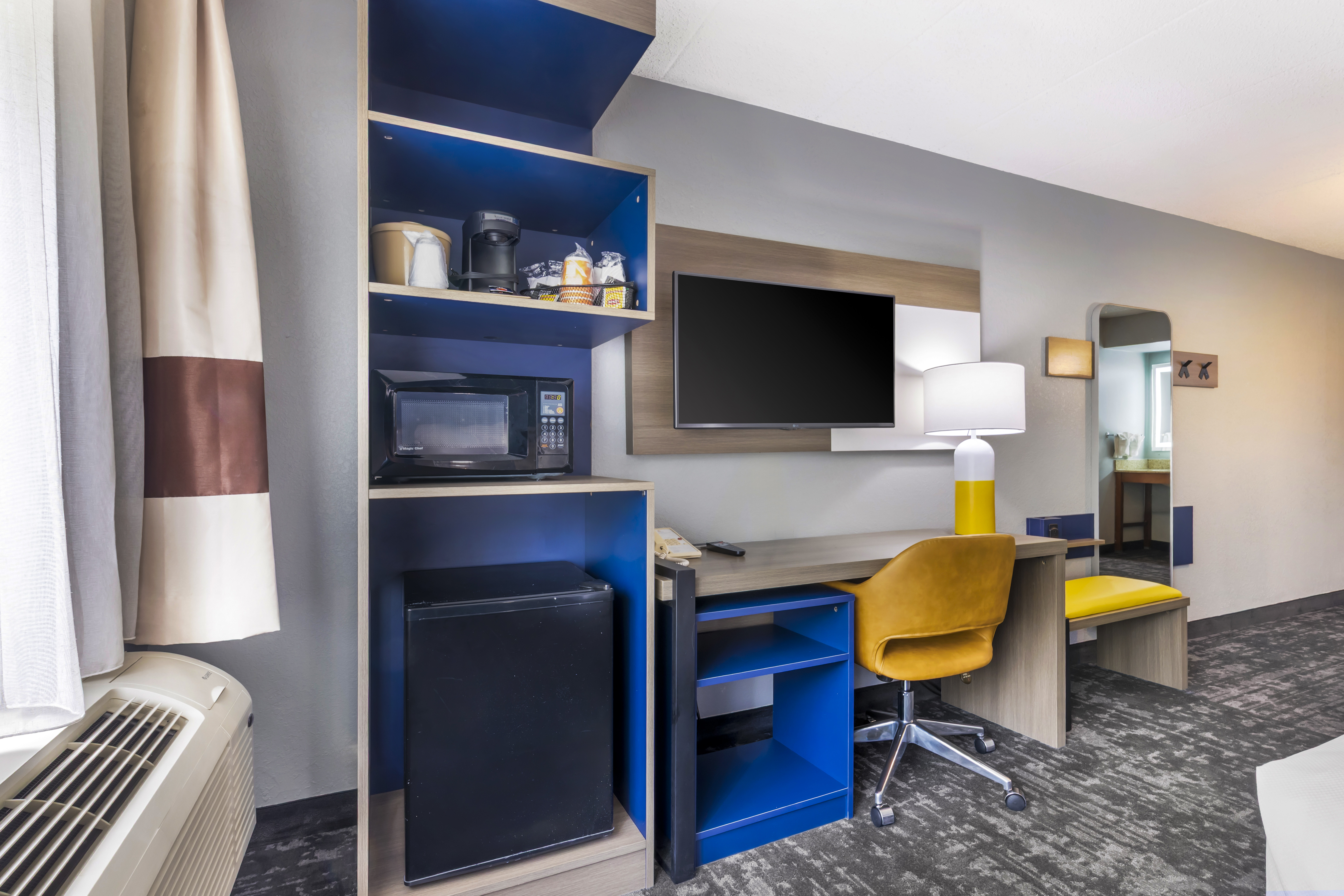 Wake up with a workout at the 24/7 fitness center followed by a free breakfast of waffles, eggs, sausage, and more. Relax in the indoor pool and hot tub, catch up on work with free WiFi and a business center, and take advantage of free parking and a paid airport shuttle (running daily from 4 a.m.–11 p.m.). Each non-smoking guest room features a flat-screen HDTV, mini-refrigerator, microwave, safe, desk, ironing amenities, bath products, and hair dryer. We also offer event space, laundry facilities, and a 24/7 front desk staff. Bring up to two pets (50 pounds or less) for an extra nightly fee.