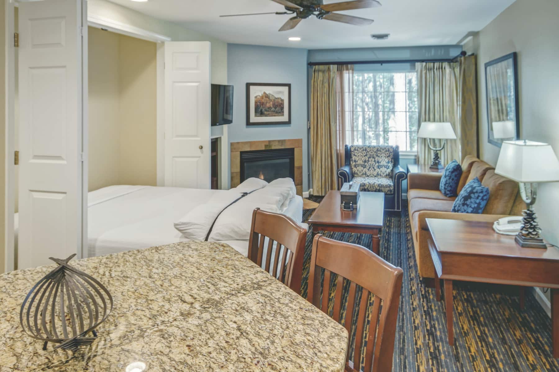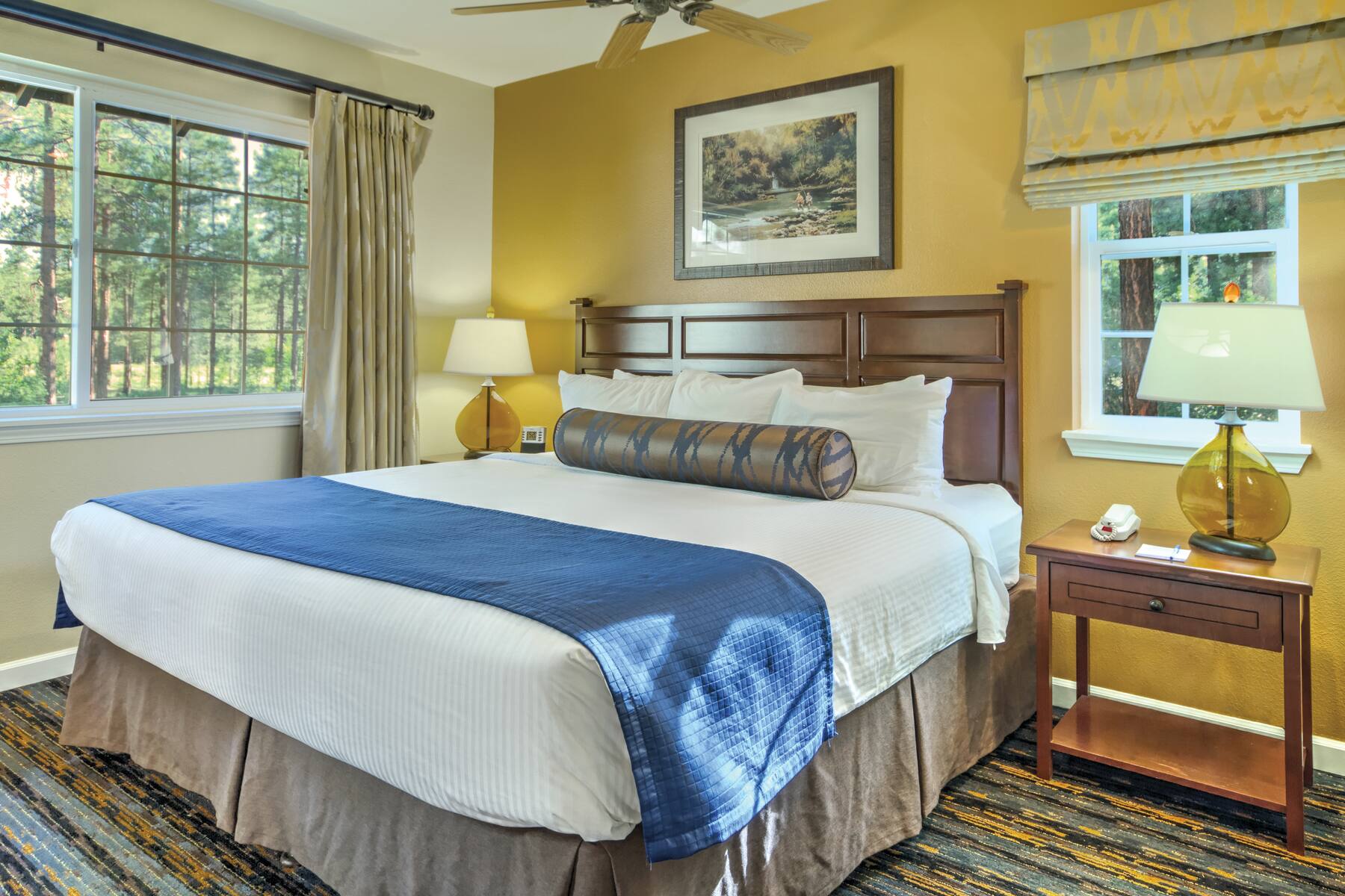 WorldMark Pinetop es tu retiro ideal para cualquier temporada si quieres ir de excursión, pescar, hacer ciclismo de montaña, jugar golf y mucho más. Con nuestra ubicación a 7,200 pies de altura, en la Sierra Blanca del noreste de Arizona, ofrecemos comodidades tipo complejo turístico, un servicio amigable y acceso a las atracciones más populares del área. Toma un recorrido guiado por el histórico Parque Arqueológico y Museo Casa Malpais, tira los dados en el Hon-Dah Casino o explorar los senderos del Parque Nacional del Bosque Petrificado. Si vas a tomar un vuelo, el Aeropuerto Regional de Show Low (SOW) está a solo un corto viaje en automóvil de nuestro complejo turístico.