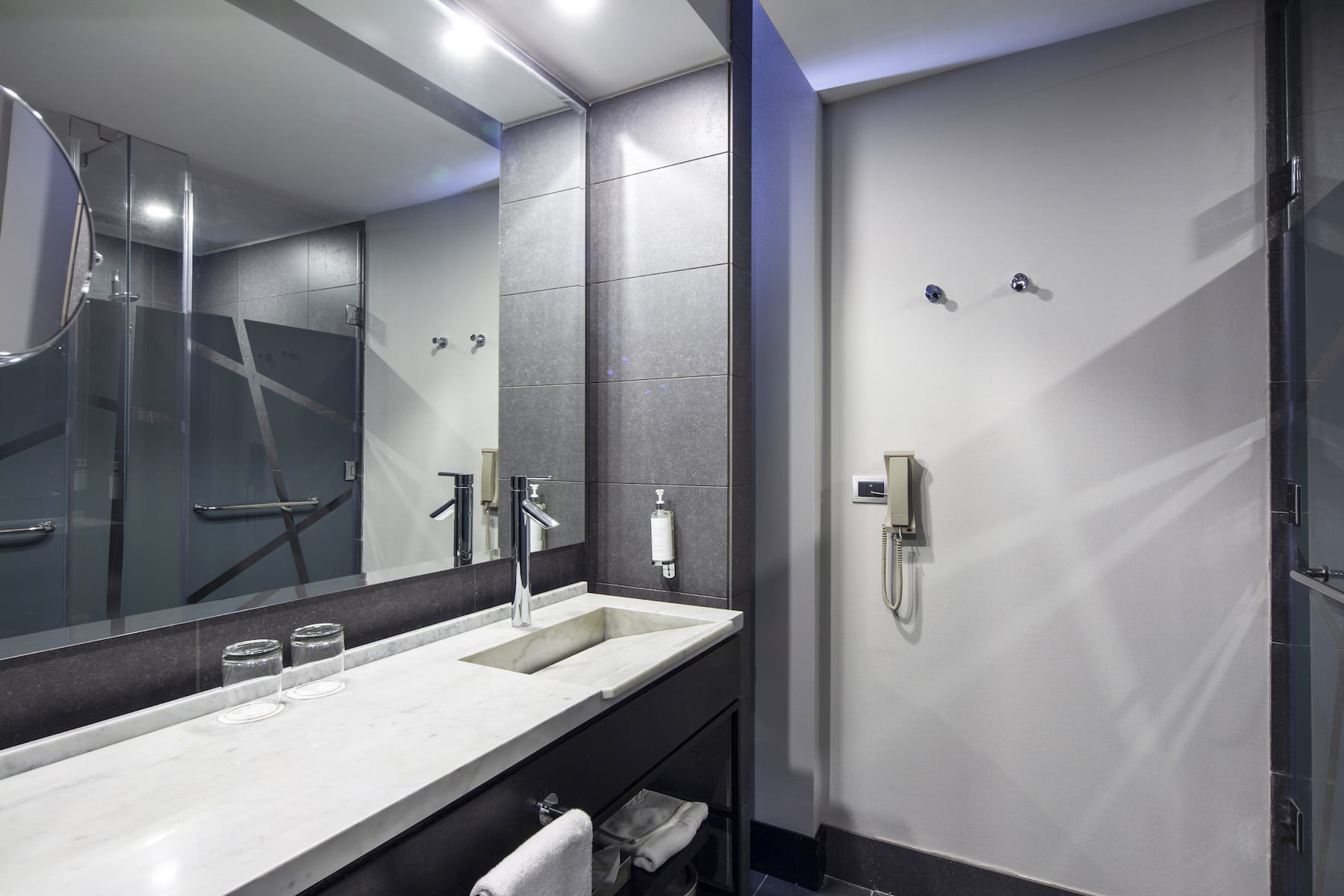 Guest room bath at the Wyndham Santiago Pettra in Santiago, Other than US/Canada