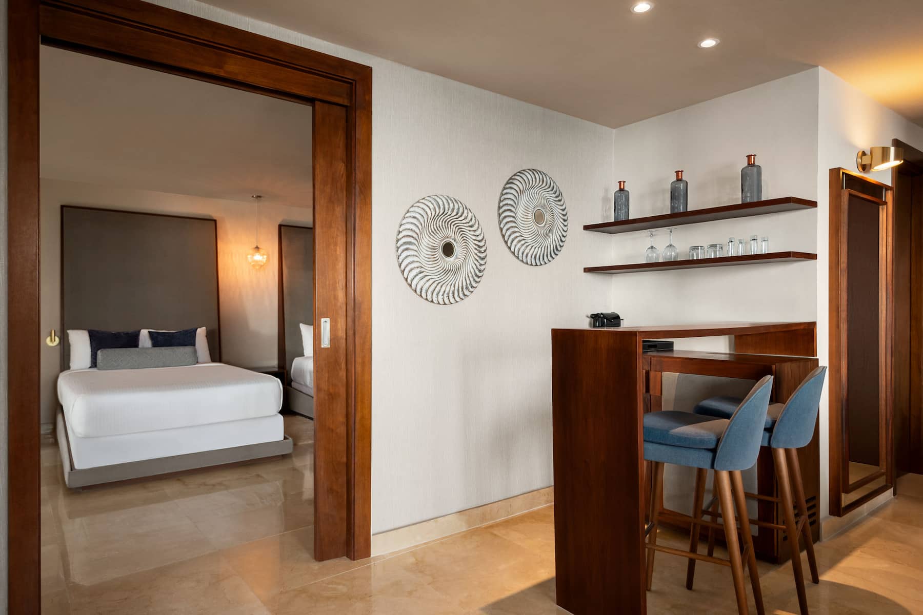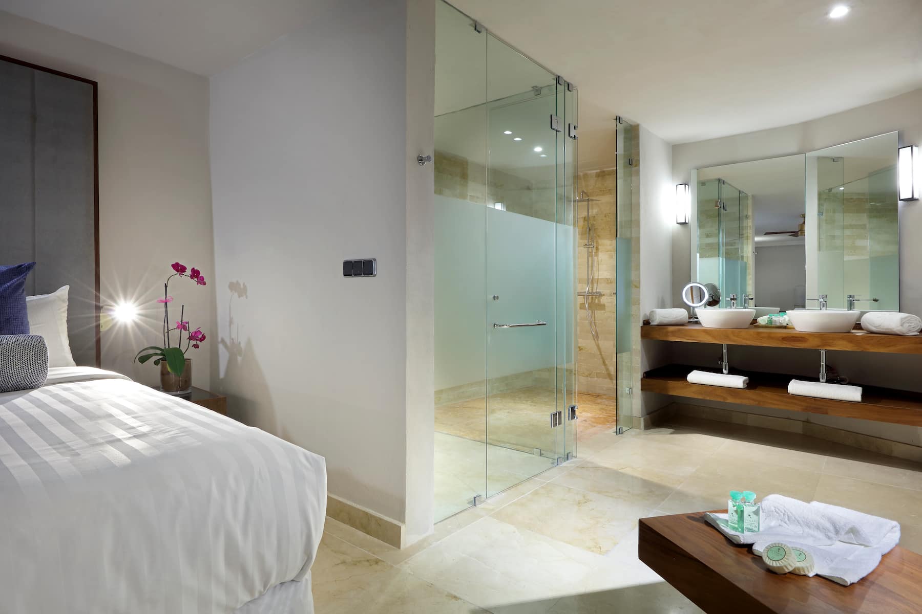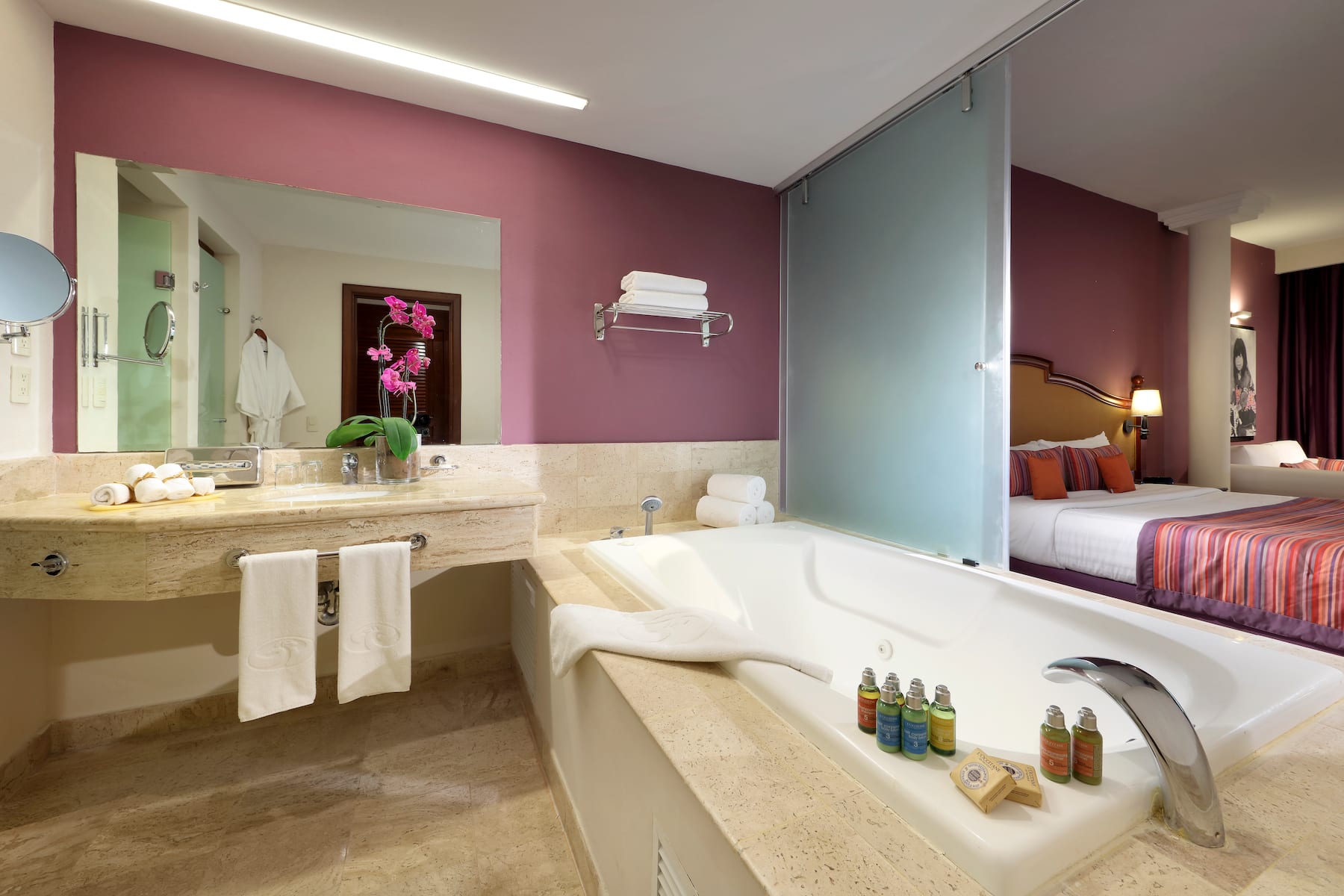 Once you settle into one of the resort’s 510 spacious, non-smoking rooms or suites, you’ll find it difficult to leave. Savor awe-inspiring views of the Pacific Ocean or lush tropical forests from a private furnished balcony. Curb every craving with 24/7 room service (a $15 USD delivery fee applies) and a well-stocked minibar. Free WiFi makes it easy to check emails and share your latest vacation highlights while a 42-inch flat-screen TV lets you chill out with a movie. Soak in the soothing hydromassage tub in the spa-like bathroom—also featuring a shower, deluxe bath products, and hair dryer—and get a good night’s sleep thanks to blackout curtains and plush memory foam mattresses. All accommodations also feature a sitting area with a table and chairs, desk, coffee/tea maker, safe, ironing amenities, and bottled water. For the ultimate stay in Punta Mita, book a luxurious suite with a hot tub on the terrace, panoramic ocean views, and spacious living room.