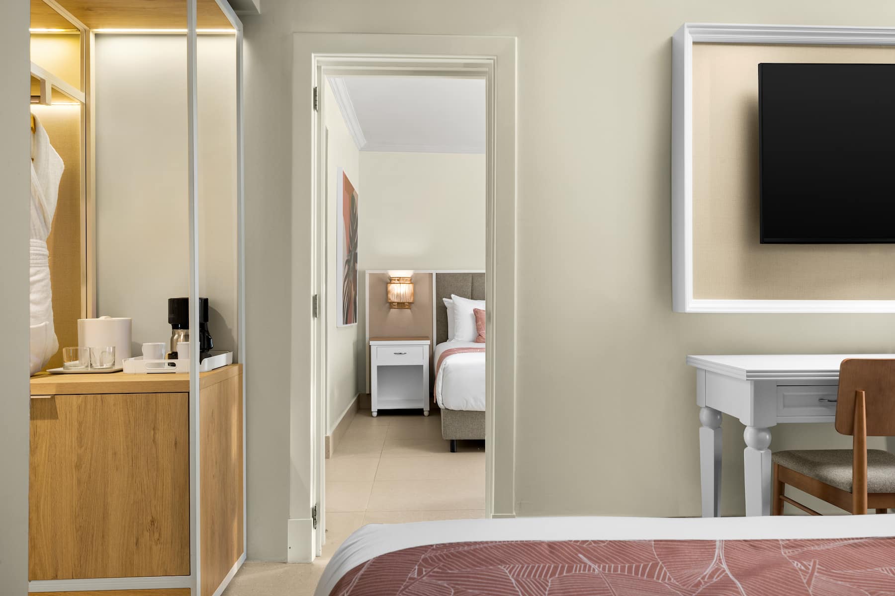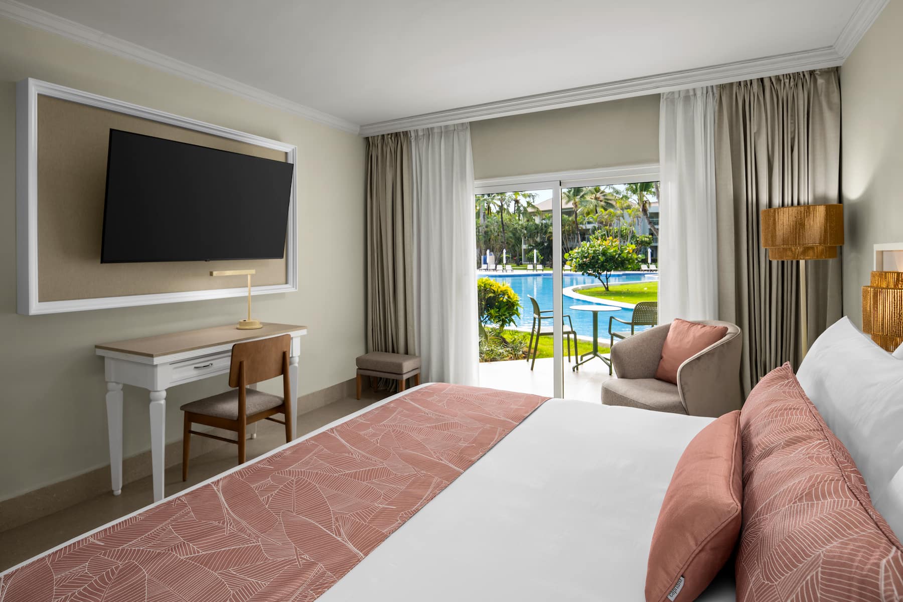 Punta Cana is the perfect place to bond with family, relax with friends, and reconnect with a significant other, so we offer a variety of luxurious accommodations to suit your needs at Wyndham Alltra Punta Cana All-Inclusive Resort. Whether you opt for a sprawling family junior suite with multiple bedrooms and a separate living room or a sanctuary with direct pool access, discover the perfect blend of comfort and convenience in a Caribbean-inspired setting. Unwind with serene views of the pool, ocean, or lush landscape from your private furnished balcony or terrace. Sip a cold drink from the complimentary minibar stocked daily, use free high-speed WiFi to post highlights from paradise, and order a delicious meal from 24/7 room service (delivery fee applies). Thanks to a quiet environment and plush, pillow-top mattress with crisp bedding, you’ll savor sweet dreams steps from the pristine sand of Uvero Alto Beach. Rise and shine with the in-room coffee/tea maker and a spa-like bathroom appointed with a soothing shower, deluxe bath products, cozy bathrobes, and a handy hair dryer. Our 620 non-smoking guest rooms and suites also feature a sitting area, flat-screen HDTV, mini-refrigerator, desk, laptop-size safe, ironing amenities, slippers, bottled water, and air conditioning.