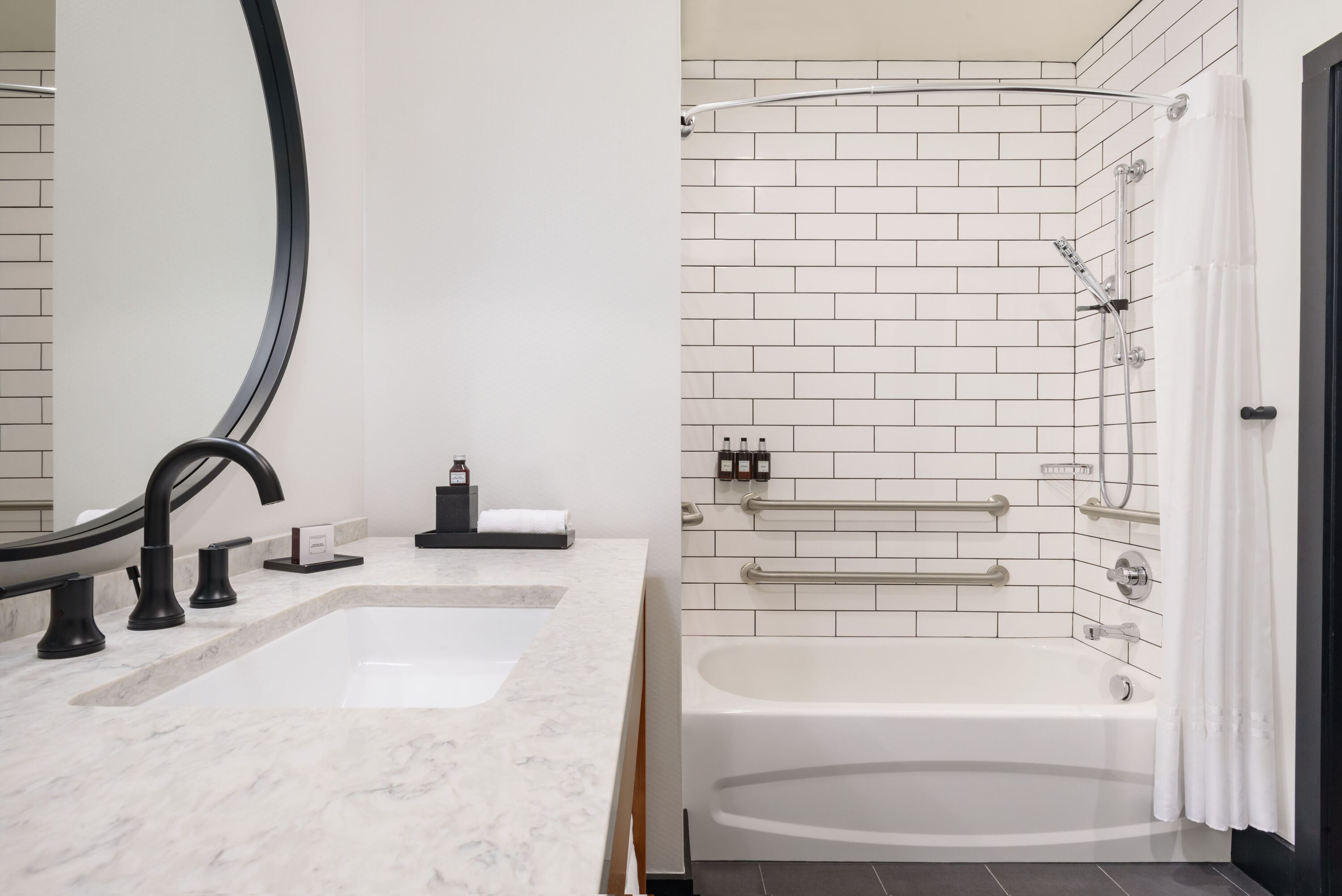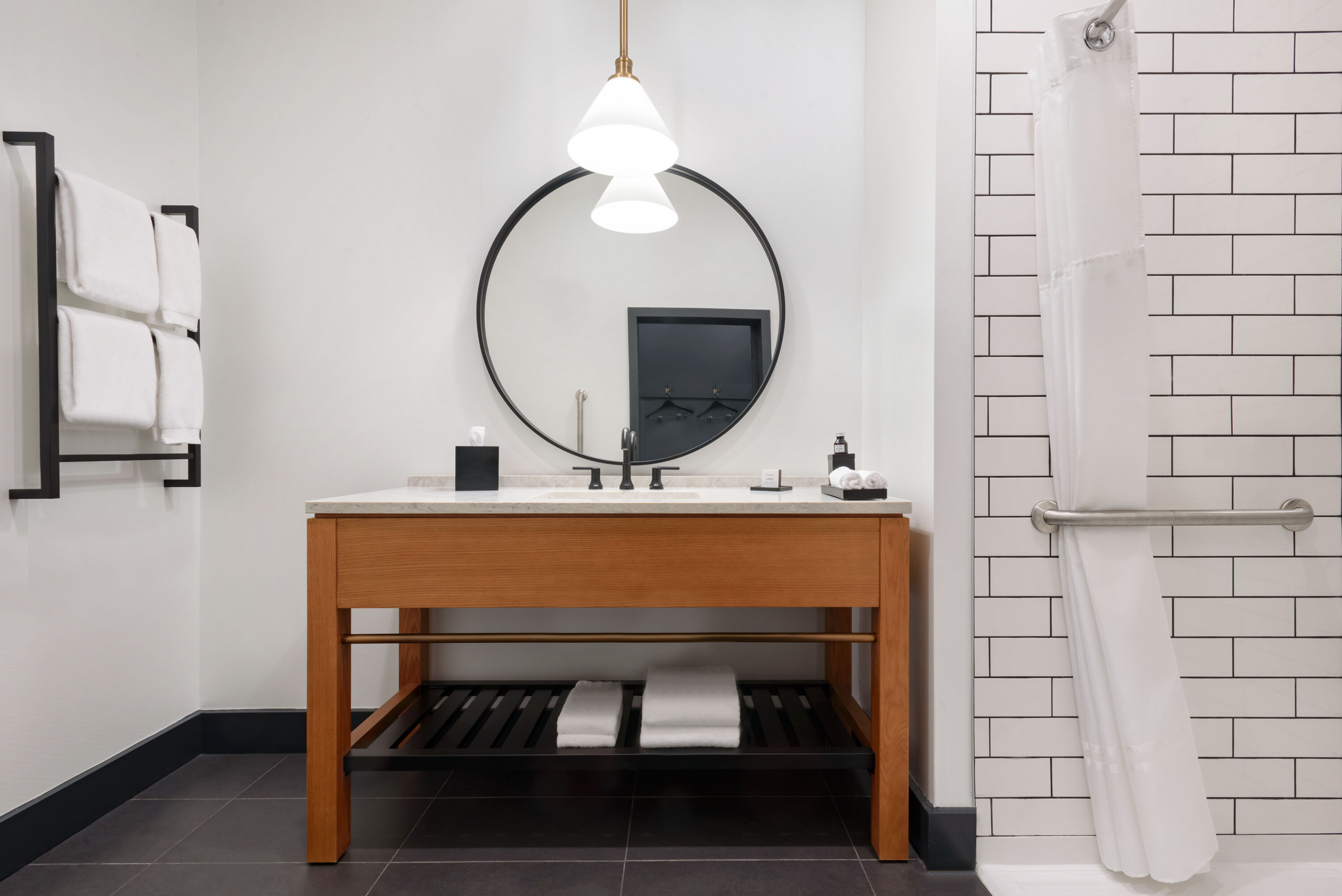 Guest room bath at the Origin Lexington, a Wyndham Hotel in Lexington, Kentucky