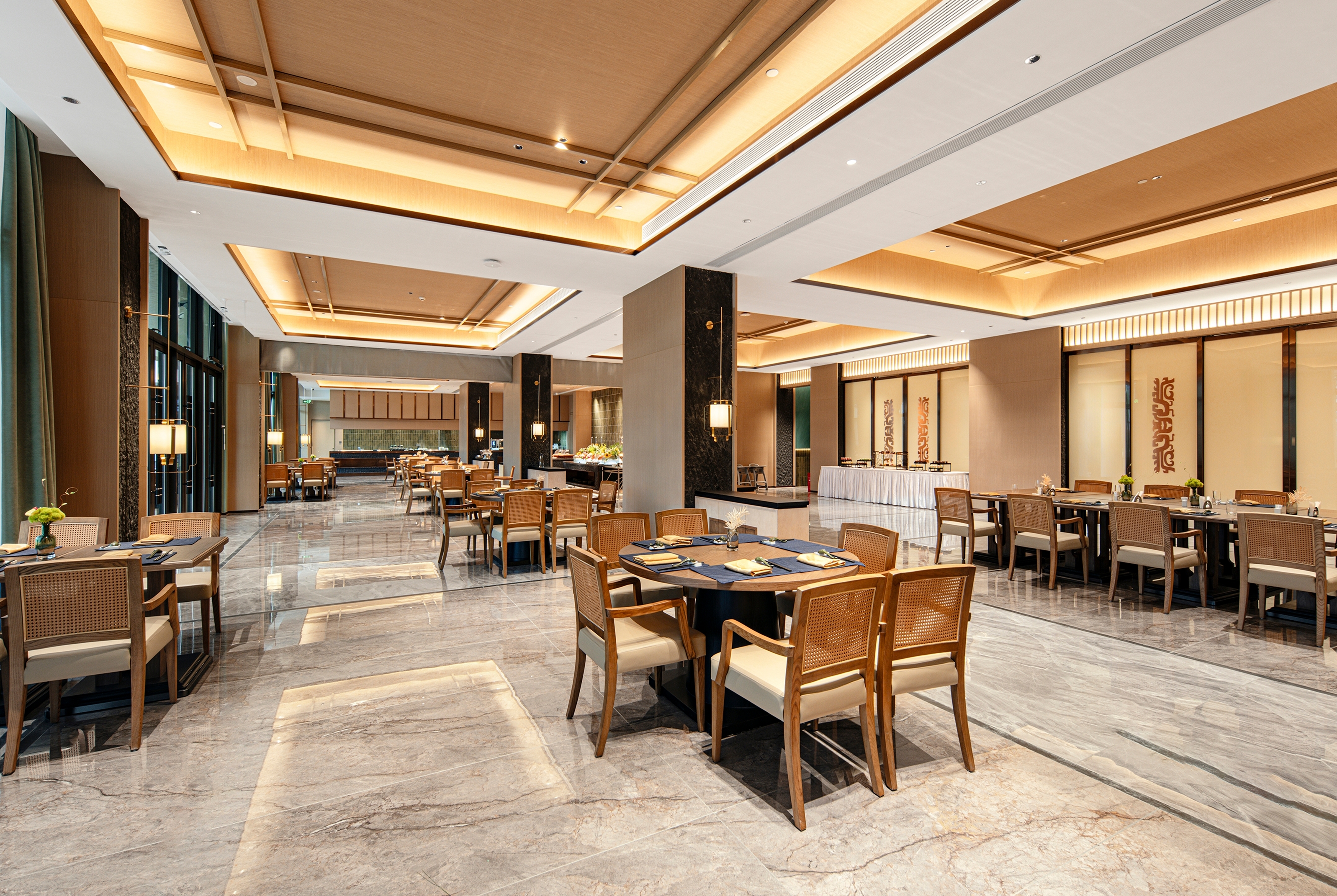 每天清早醒来,您可以享用丰盛的中式和西式自助早餐,菜品包括点心、面条、现烤面包等。