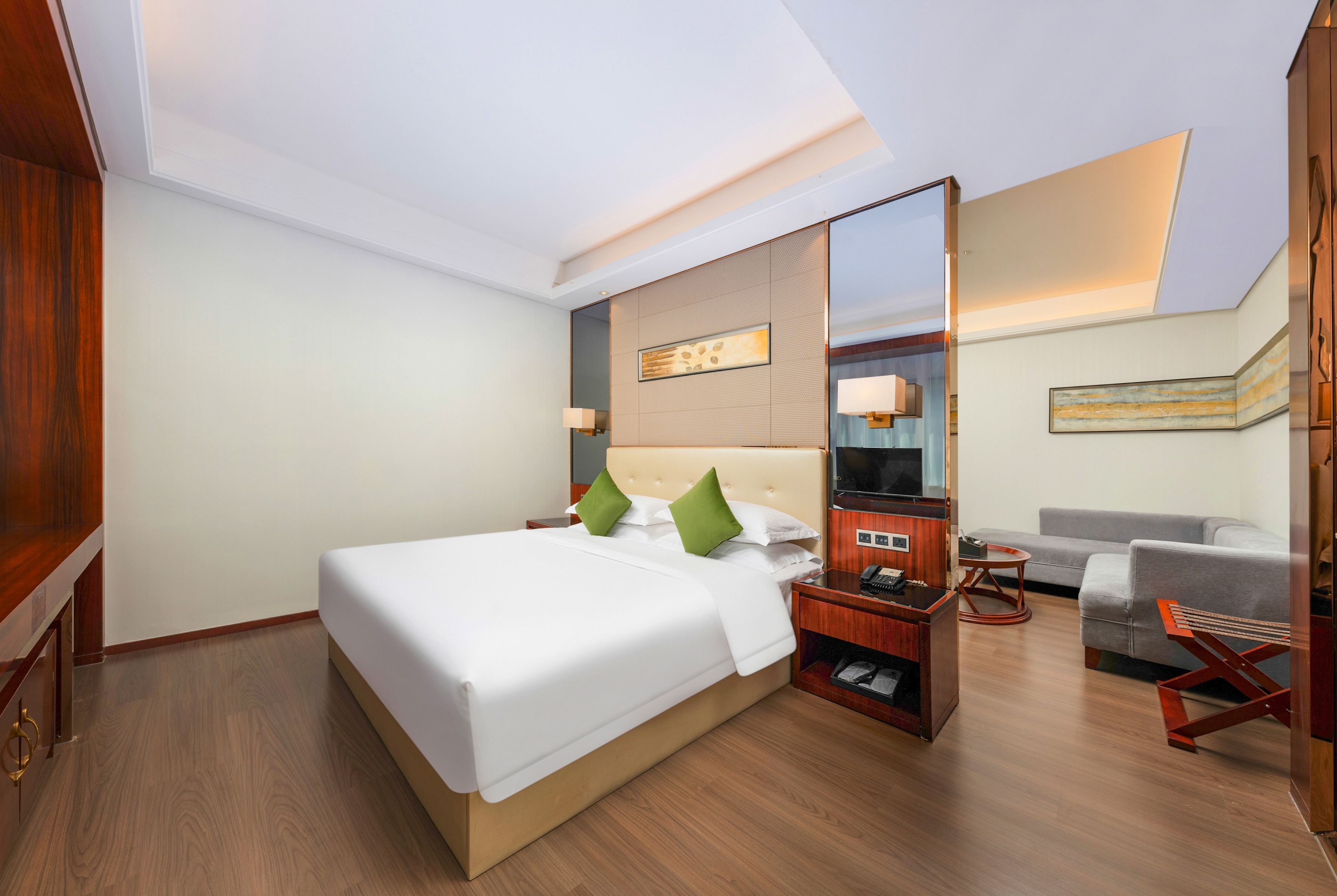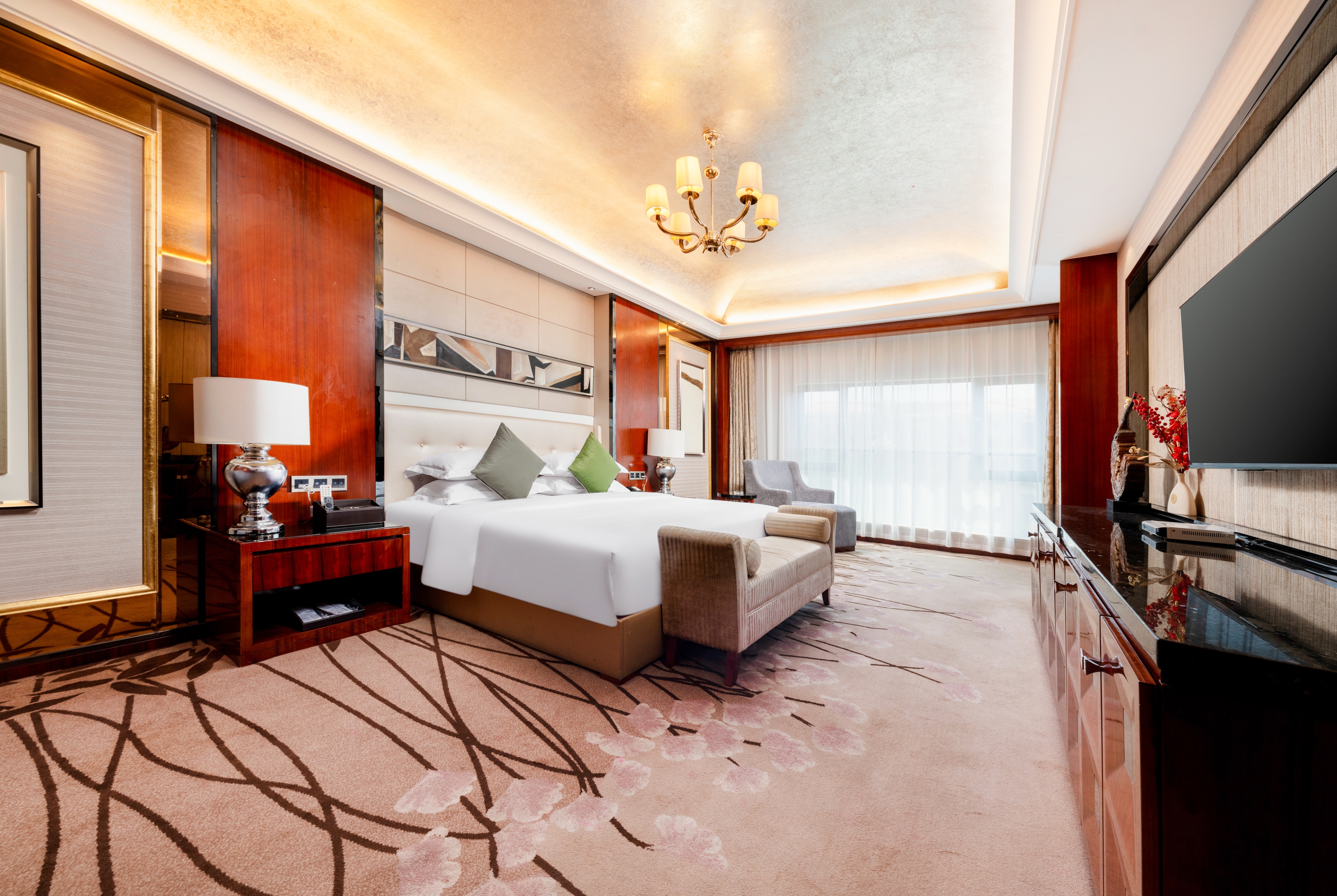 酒店提供免费 WiFi 和免费停车服务,更有礼宾部和全天候前台工作人员竭诚以待,让您畅享自在住宿体验。您可以在三家餐厅中大快朵颐,在室外游泳池畅游,在健身房锻炼身体。每间现代客房均搭配典雅的欧式装饰,配有纯平高清电视、办公桌、起居室、保险箱、咖啡机/沏茶壶、迷你吧、冰箱、浴袍、拖鞋、洗浴用品、吹风机、空调和瓶装水。还提供商务中心、洗衣设施、活动空间、KTV 夜总会、便利店、花园和全天候机器人送货服务。