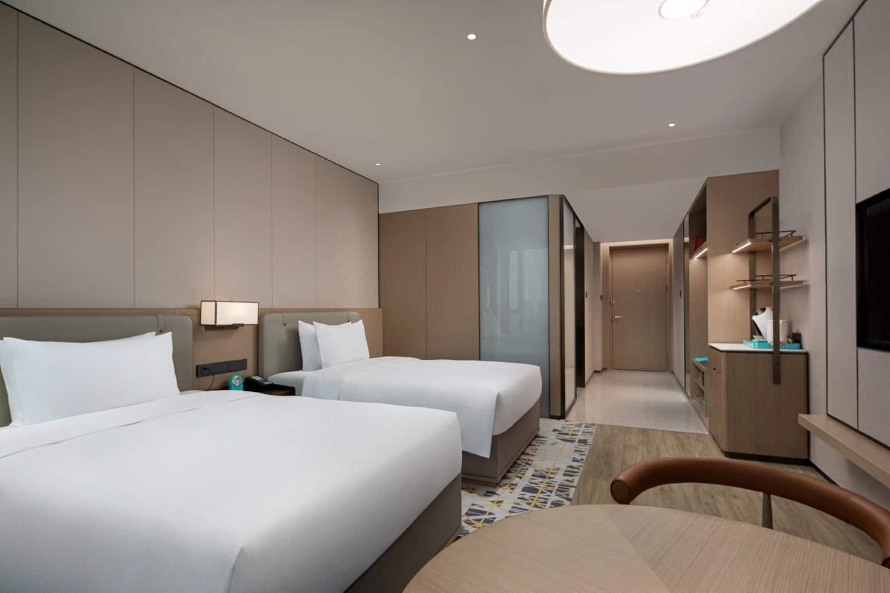 无论您是来常州出差还是旅游,入住我们宽敞的无烟客房或套房,定会让您感到舒适惬意。所有客房都位于较高楼层,可以欣赏到绝佳的城市景观。使用免费高速无线网络与同事和爱人保持联系,还可以通过客房配备的可播放卫星频道的纯平高清电视,收看您最喜爱的节目。换上舒适的拖鞋,在迷你吧小酌一杯,然后通过客房服务点一份美味的晚餐。舒适的双垫层床垫上铺有清爽的棉质床单和羽毛枕头,让您尽享整夜安眠。早晨,您可以使用咖啡机/沏茶壶冲一杯饮品,提神醒脑,然后在配有淋浴、高档沐浴用品、蓬松浴袍、带灯化妆镜和吹风机的时尚浴室冲个澡,悠闲地开启美好一天。所有客房均配有光线充足的办公桌、桌椅、笔记本电脑大小的保险箱、熨衣设施、瓶装水和中央空调。