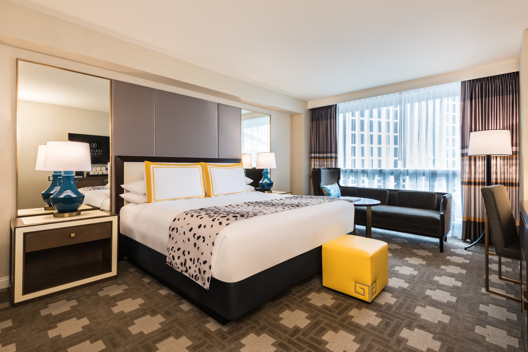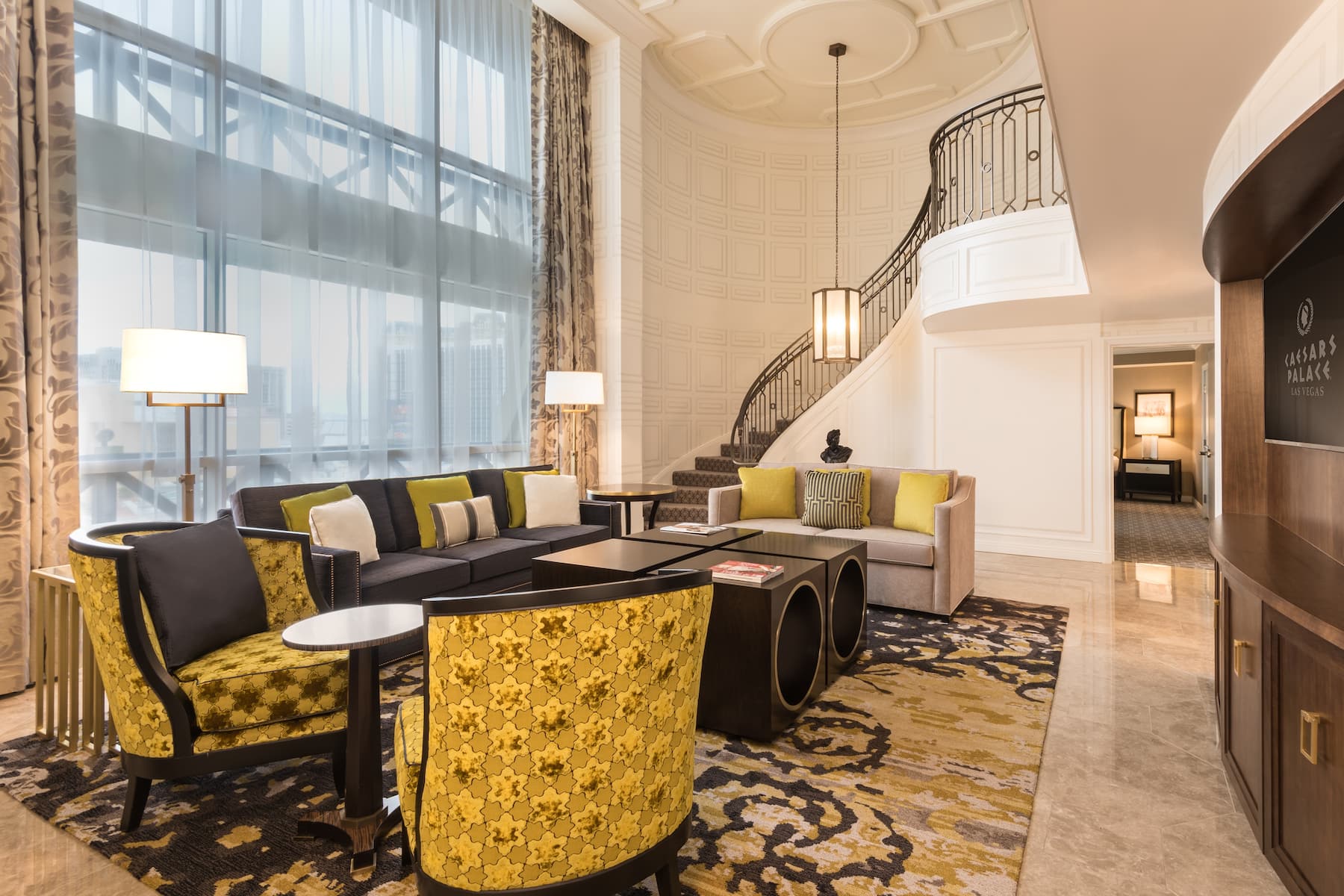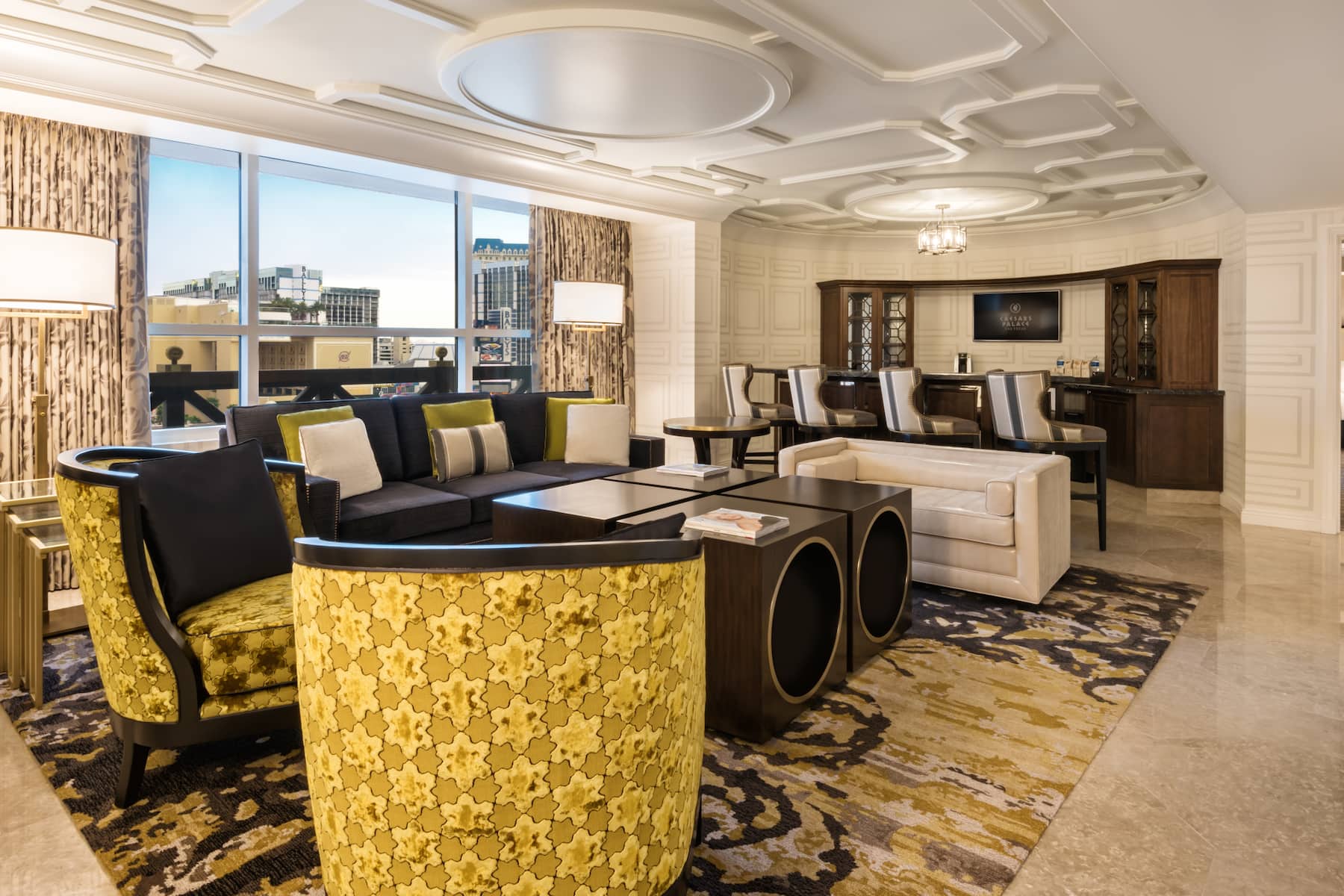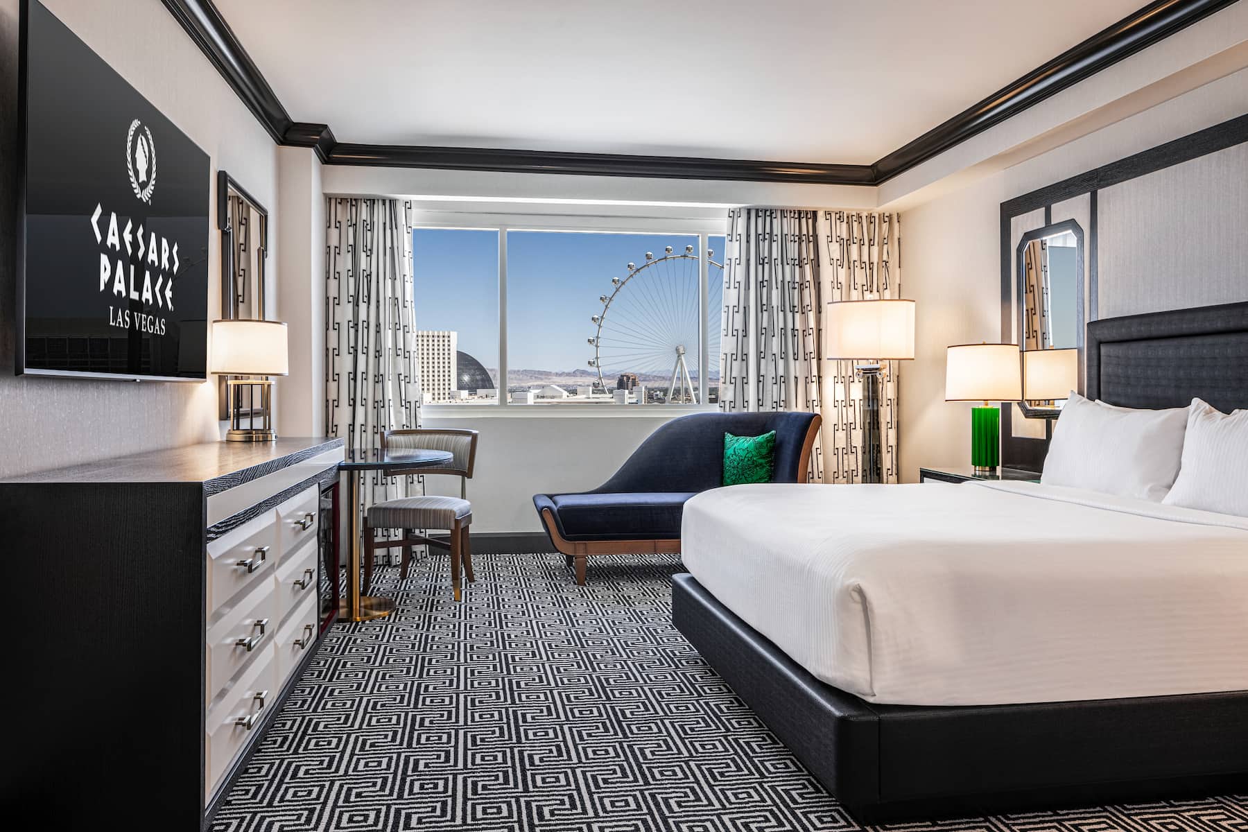 When you enter a grand palace, you expect ultra-plush accommodations and Caesars Palace delivers in full. From custom artwork and sculpture that celebrates Caesars’ rich history to premier amenities and spa-style comforts, you will have a royal experience in any room, suite, or villa. All accommodations are thoughtfully appointed with a flat-screen HDTV, safe, ironing facilities, high-speed WiFi, and an in-room safe. Upgrade your experience with an oversized suite featuring an opulent stone bathroom or opt for a palatial villa with a sauna, private fitness facility, and 800-square foot patio.