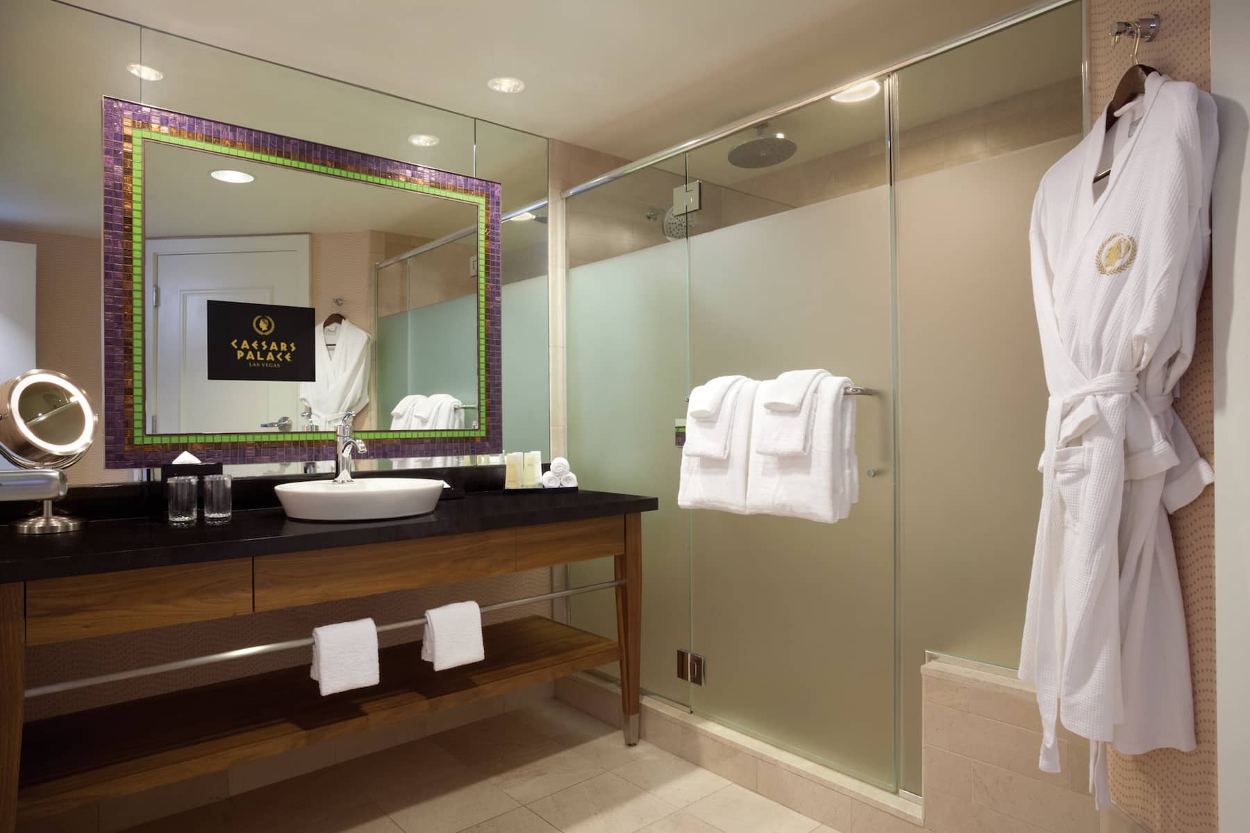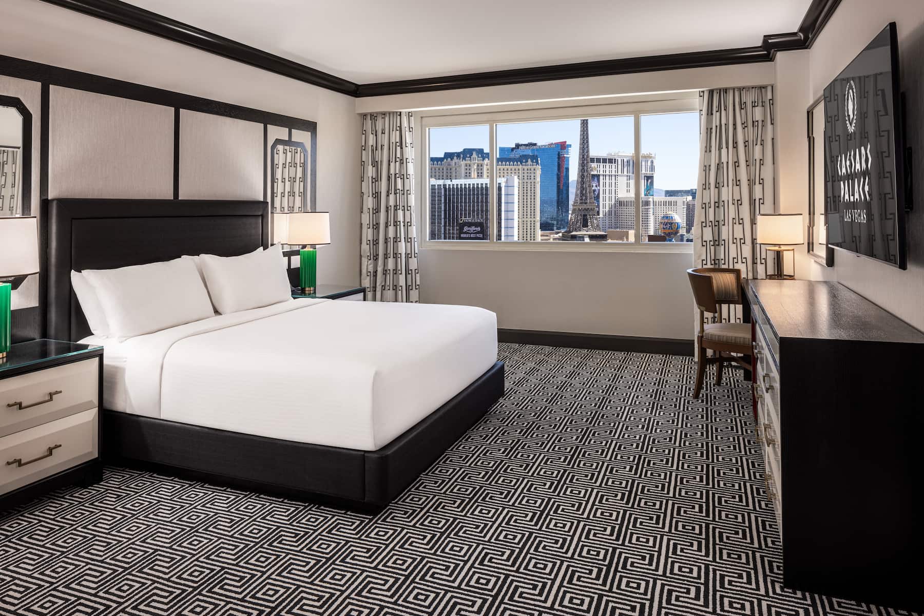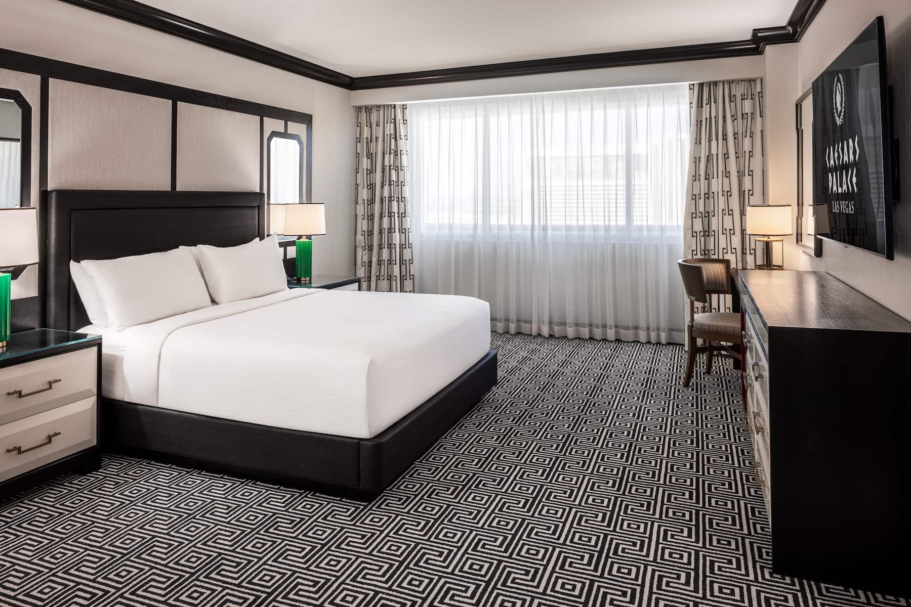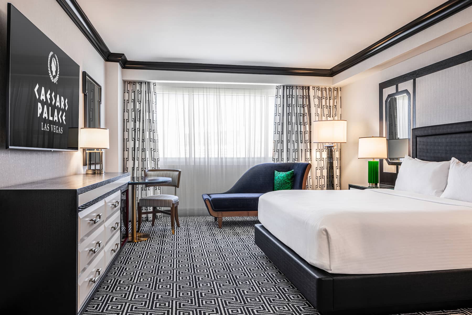 When you enter a grand palace, you expect ultra-plush accommodations and Caesars Palace delivers in full. From custom artwork and sculpture that celebrates Caesars’ rich history to premier amenities and spa-style comforts, you will have a royal experience in any room, suite, or villa. All accommodations are thoughtfully appointed with a flat-screen HDTV, safe, ironing facilities, high-speed WiFi, and an in-room safe. Upgrade your experience with an oversized suite featuring an opulent stone bathroom or opt for a palatial villa with a sauna, private fitness facility, and 800-square foot patio.
