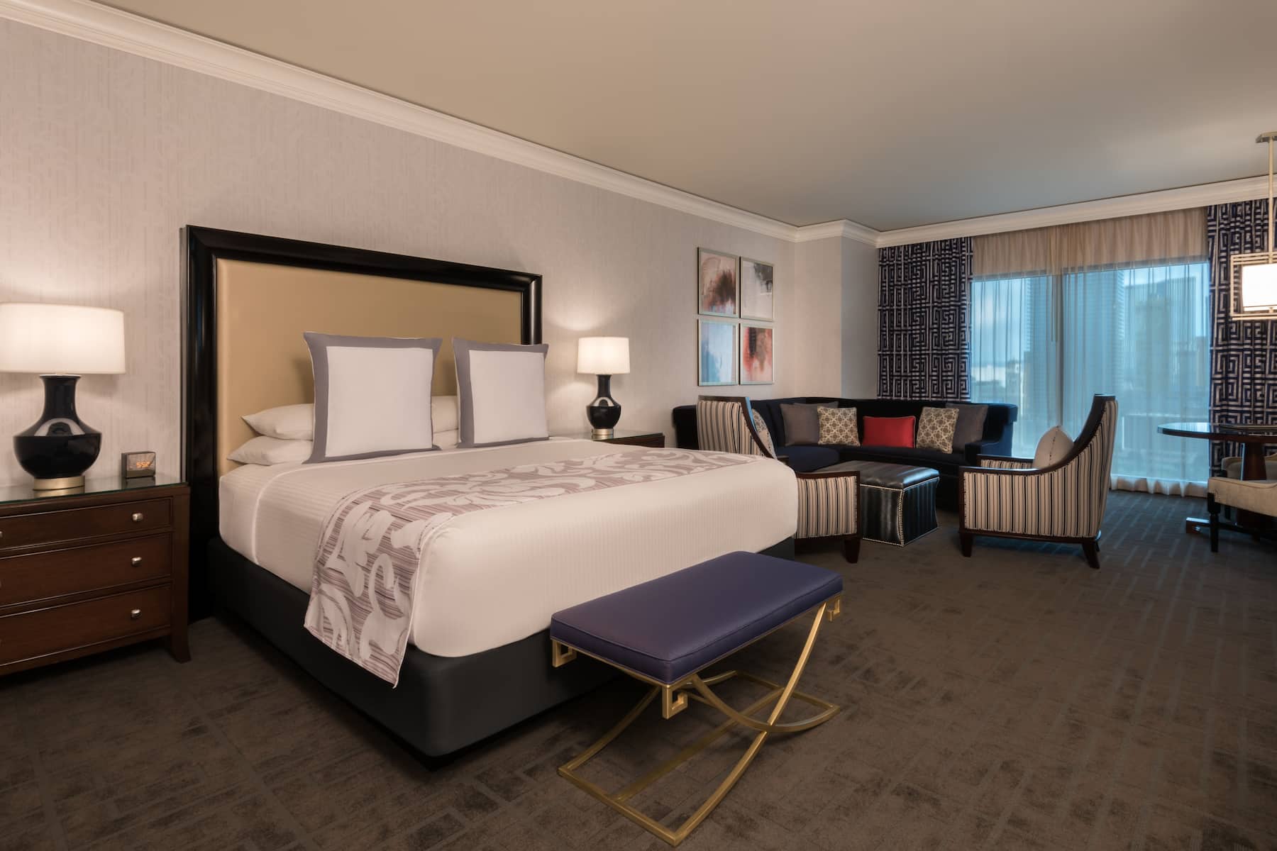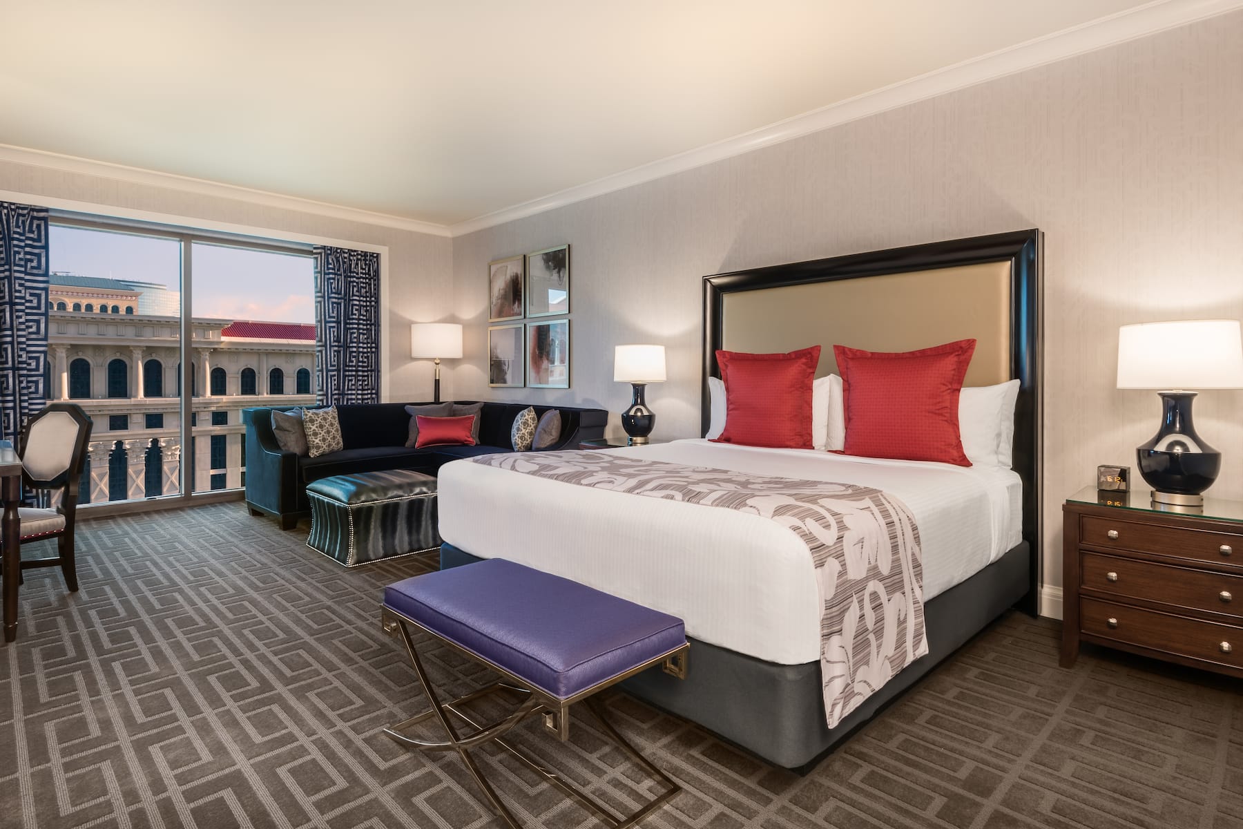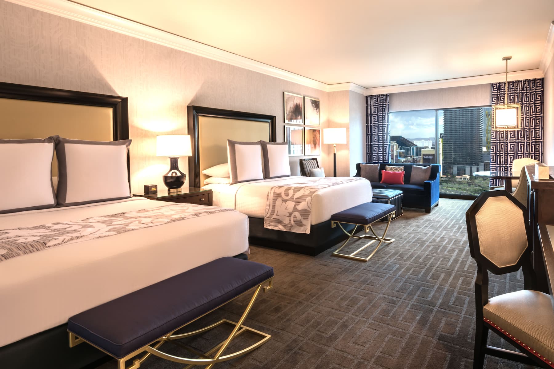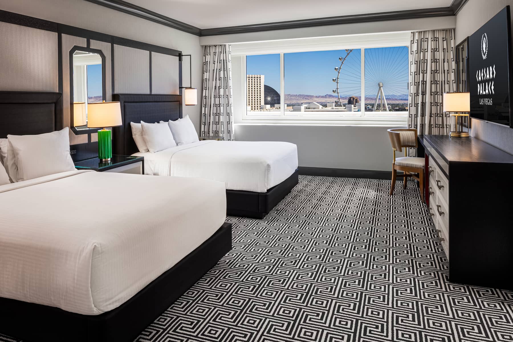 When you enter a grand palace, you expect ultra-plush accommodations and Caesars Palace delivers in full. From custom artwork and sculpture that celebrates Caesars’ rich history to premier amenities and spa-style comforts, you will have a royal experience in any room, suite, or villa. All accommodations are thoughtfully appointed with a flat-screen HDTV, safe, ironing facilities, high-speed WiFi, and an in-room safe. Upgrade your experience with an oversized suite featuring an opulent stone bathroom or opt for a palatial villa with a sauna, private fitness facility, and 800-square foot patio.