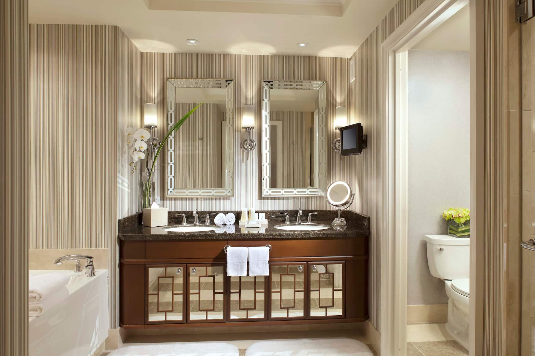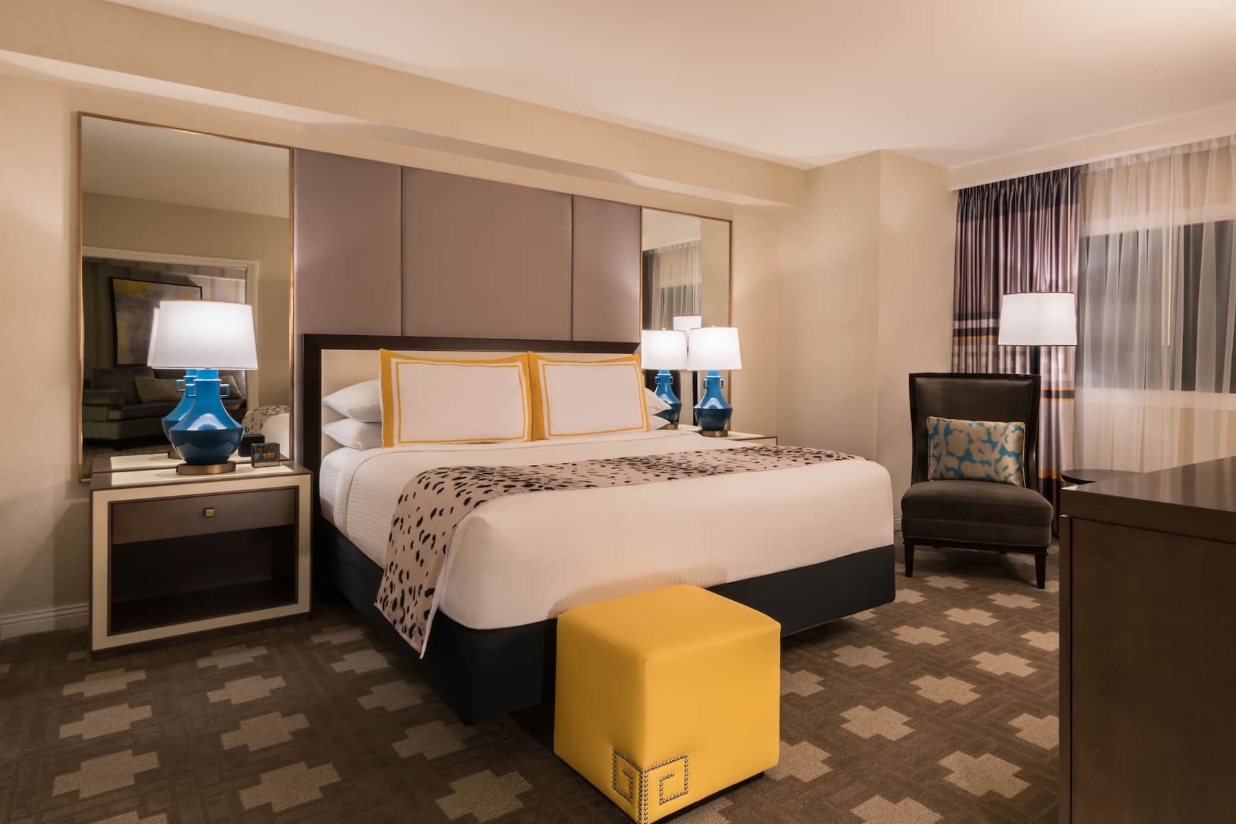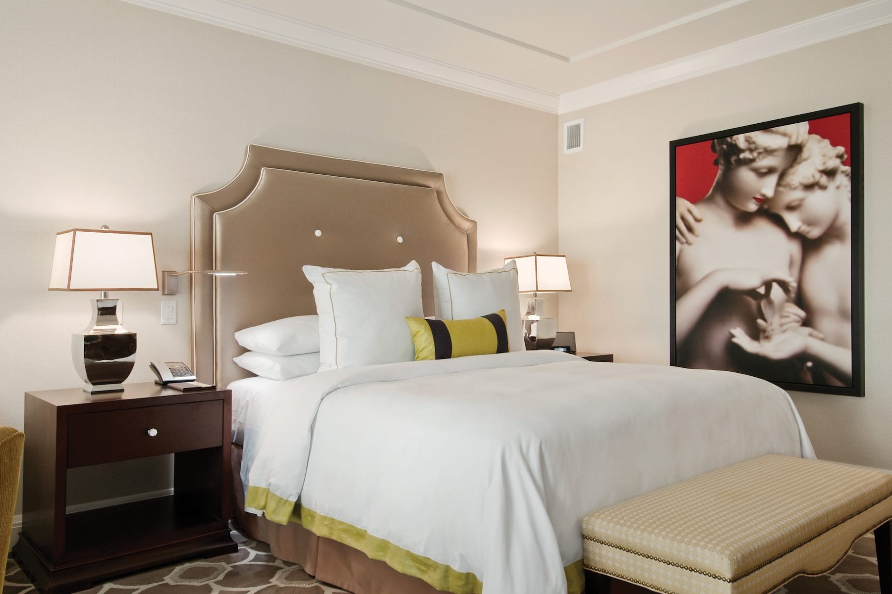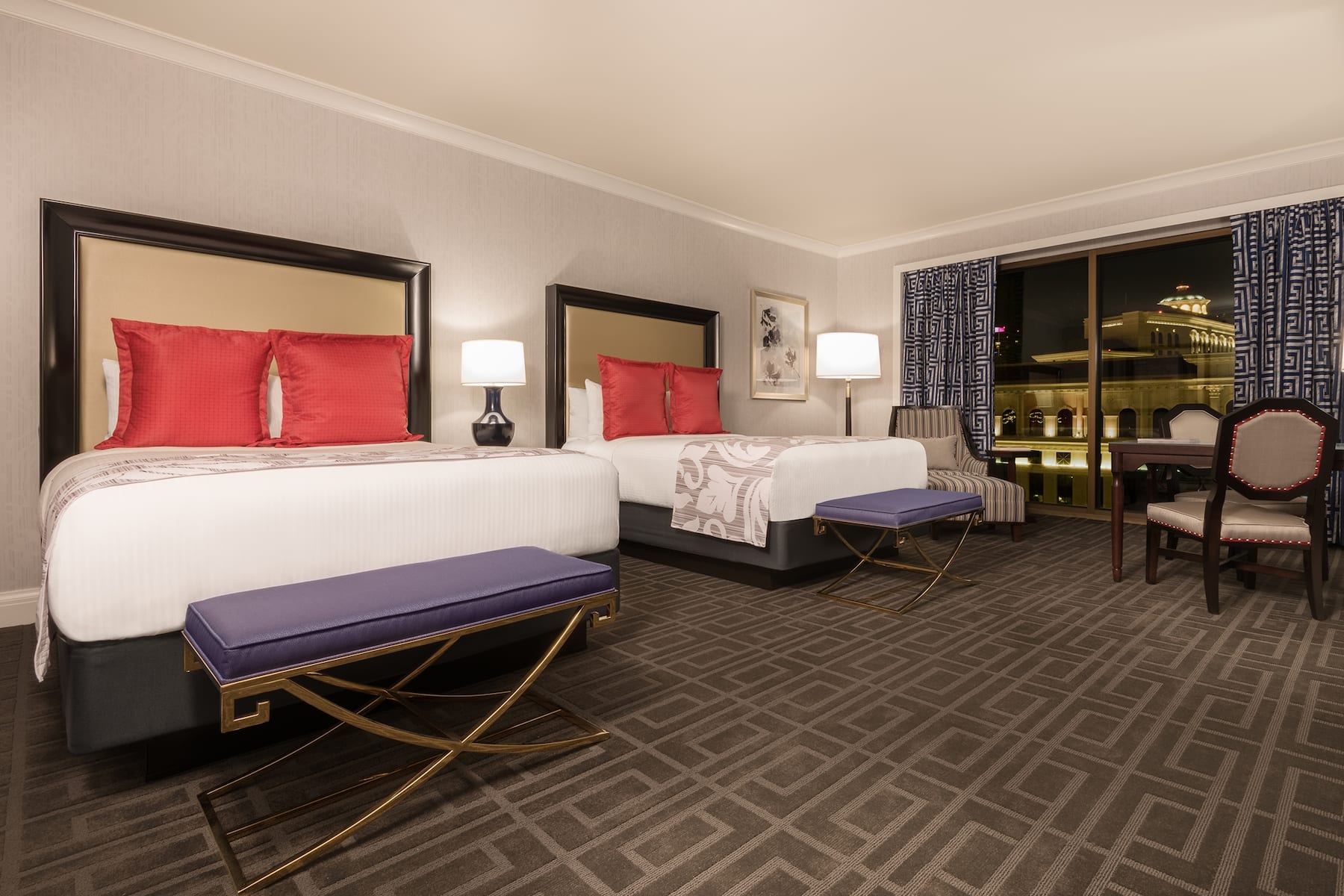 When you enter a grand palace, you expect ultra-plush accommodations and Caesars Palace delivers in full. From custom artwork and sculpture that celebrates Caesars’ rich history to premier amenities and spa-style comforts, you will have a royal experience in any room, suite, or villa. All accommodations are thoughtfully appointed with a flat-screen HDTV, safe, ironing facilities, high-speed WiFi, and an in-room safe. Upgrade your experience with an oversized suite featuring an opulent stone bathroom or opt for a palatial villa with a sauna, private fitness facility, and 800-square foot patio.